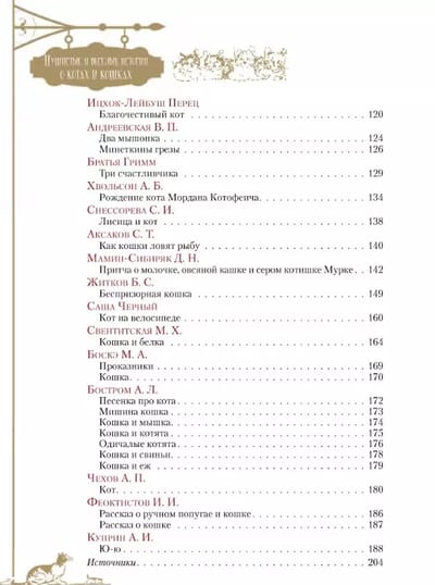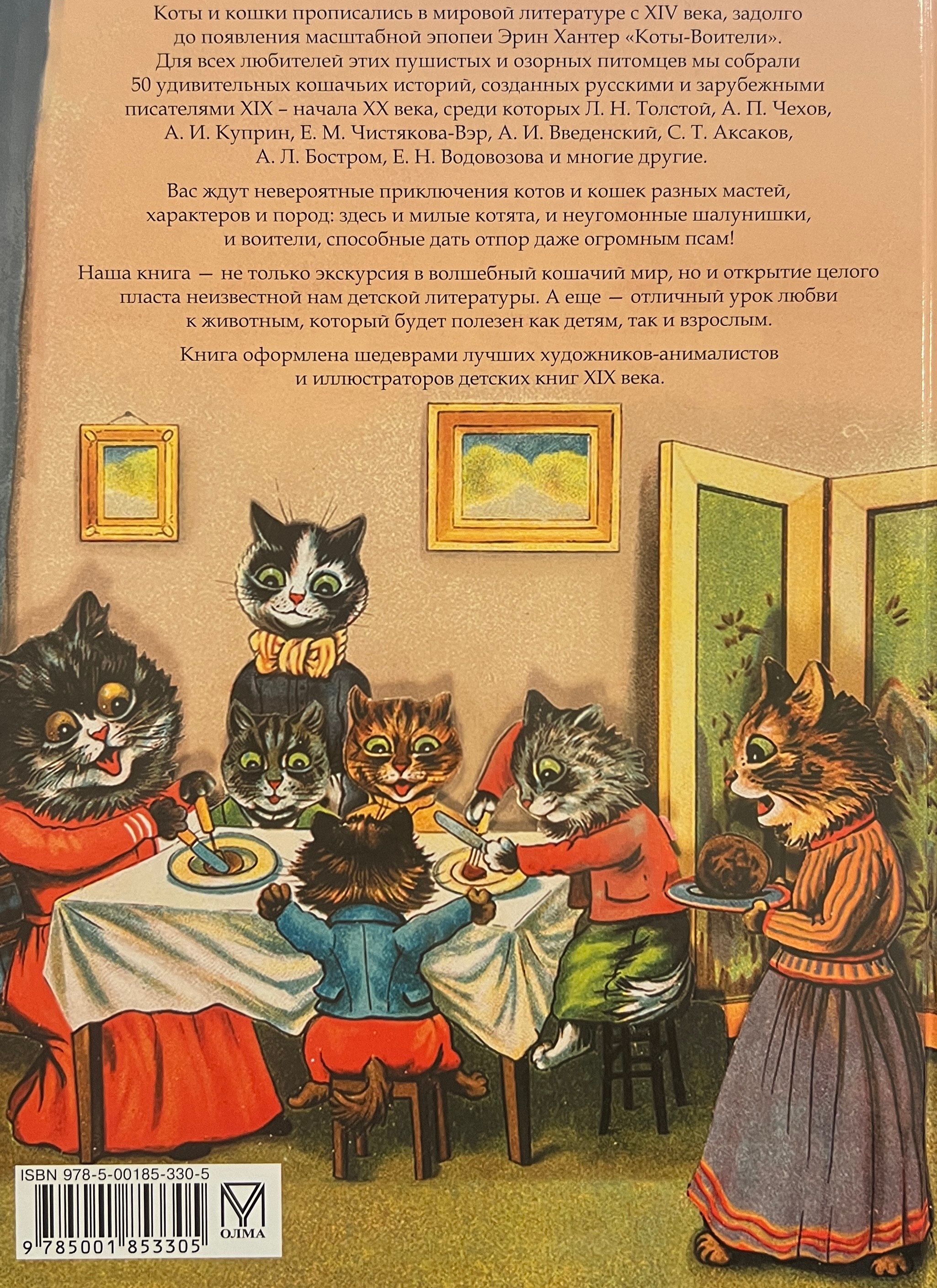 Коты и кошки прописались в мировой литературе с XIV века, задолго до появления масштабной эпопеи Эрин Хантер «Коты-Воители». Для всех любителей этих пушистых и озорных питомцев мы собрали 50 удивительных кошачьих историй, созданных русскими и зарубежными писателями XIX — начала XX века, среди которых Л. Н. Толстой, А. П. Чехов, А. И. Куприн, Е. М. Чистякова-Вэр, А. И. Введенский, С. Т. Аксаков, А. Л. Бостром, Е. Н. Водовозова и многие другие. Вас ждут невероятные приключения котов и кошек разных мастей, характеров и пород: здесь и милые котята, и неугомонные шалунишки, и воители, способные дать отпор даже огромным псам! Наша книга — не только экскурсия в волшебный кошачий мир, но и открытие целого пласта неизвестной нам детской литературы. А еще — отличный урок любви к животным, который будет полезен как детям, так и взрослым. Книга оформлена шедеврами лучших художников-анималистов и иллюстраторов детских книг XIX века.