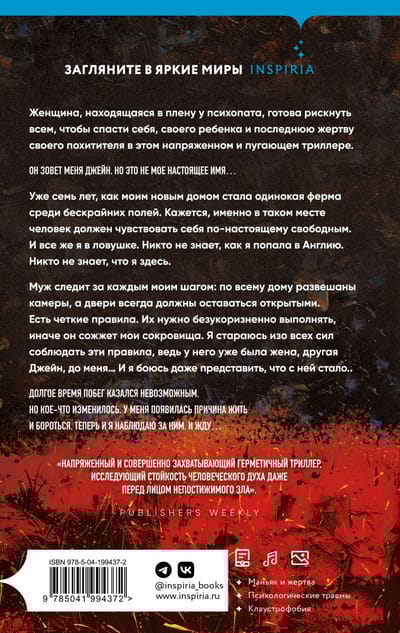 Муж следит за каждым моим шагом: по всему дому развешаны камеры, а двери всегда должны оставаться открытыми. Есть четкие правила. Их нужно безукоризненно выполнять, иначе он сожжет мои сокровища. Я стараюсь изо всех сил соблюдать эти правила, ведь у него уже была жена, другая Джейн, до меня… И я боюсь даже представить, что с ней стало.