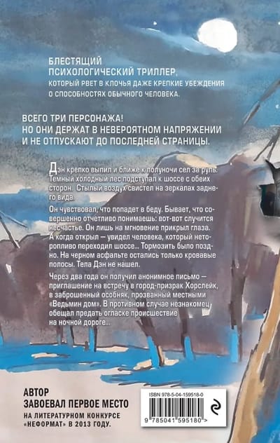 Дэн крепко выпил, и ближе к полуночи сел за руль. Темных холодный лес подступал к шоссе с обеих сторон. Стылый воздух свистел на зеркалах заднего вида. Водитель лишь на мгновение прикрыл глаза. А когда открыл – увидел человека, который неторопливо переходил шоссе…. Тормозить было поздно. На черном асфальте остались только кровавые полосы. Тела Дэн не нашел. Через два года он получил анонимное письмо - приглашение на встречу в город-призрак Хорслейк, в заброшенный особняк, прозванный местными «Ведьмин дом». В противном случае незнакомец обещал предать огласке происшествие на ночной дороге…