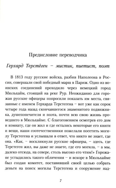 Трактат «Путь истины», главное произведение выдающегося богослова, мистика и душепопечителя Герхарда Терстегена (1697 — 1769) принадлежит к сокровищнице мировой христианской литературы. Ясное изложение учения о внутренней духовной жизни, подробное раскрытие того, что представляет собой «аскетика веры», учение о молитве как непрестанном пребывании в живом соприсутствии Божием — все это (как и многое другое) может стать для читателя действенным руководством и утешением на его духовном пути.