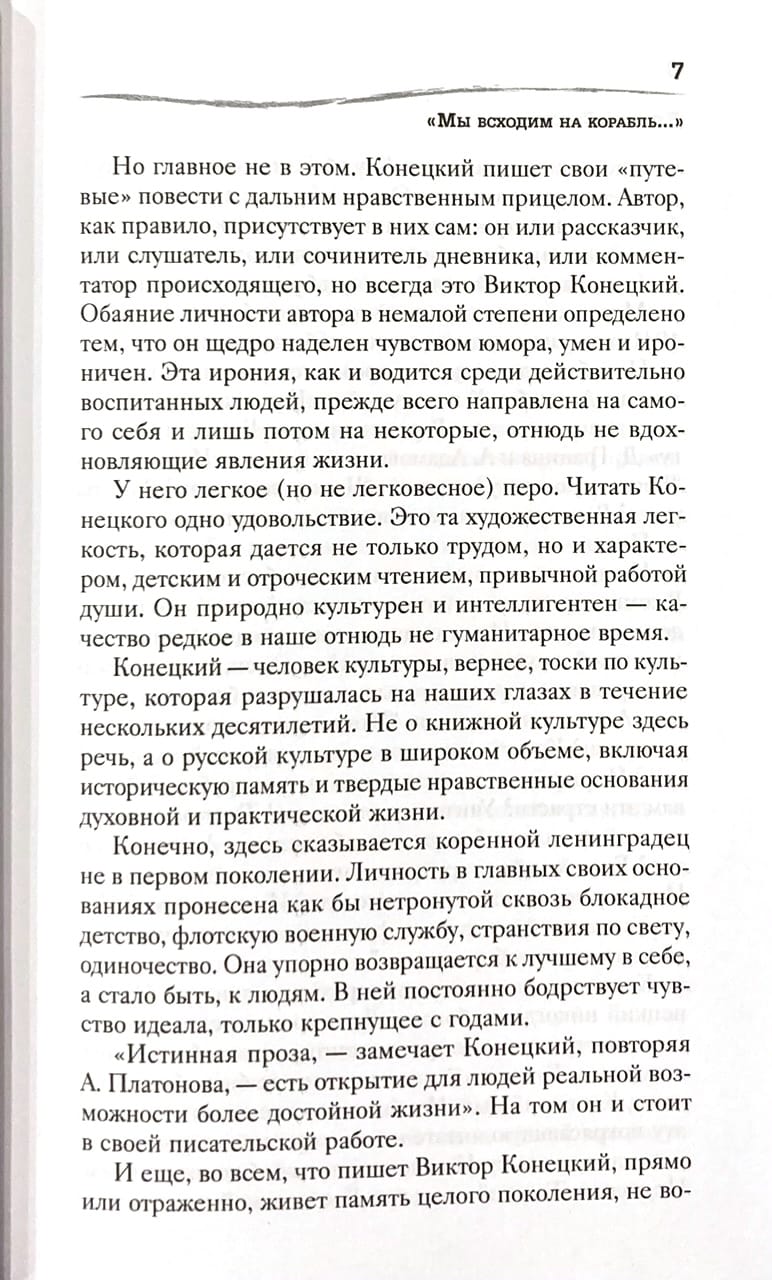Виктор Викторович Конецкий (1929–2002) — писатель, киносценарист, штурман дальнего плавания. Вся жизнь писателя-моряка была связана с морем и душа человека в странствии, показанная в его книгах, ценилась даже теми, кто никогда не бывал в море. Виктор Конецкий из того поколения писателей, для кого литература была не ремеслом, а делом жизни, кто верил в силу и значение слова. Его книги для тех, кто продолжает верить, что литература и совесть — понятия нераздельные.