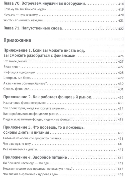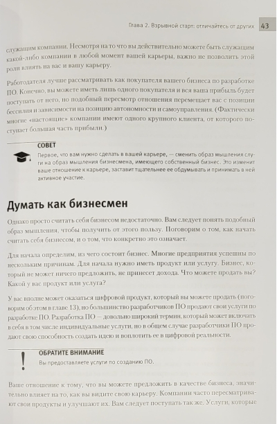 Любой программист - прежде всего, человек со своими достоинствами и недостатками. Но в то же время программист - это интеллектуал, человек, постоянно занятый решением задач, анализом требований, исправлением ошибок, взаимодействием с коллегами и заказчиками. Наконец, программист - это человек, регулярно испытывающий серьезный стресс, вынужденный укладываться в жесткие сроки и просто обязанный постоянно самосовершенствоваться как профессионал и человек. Эта книга содержит исчерпывающую информацию о том, что требуется для выстраивания успешной карьеры программиста, помогает IT-специалистам лучше понять свою профессию и коллег, всегда оставаться востребованным на рынке труда, целенаправленно и результативно развиваться, а также получать от любимой работы настоящую самоотдачу и подлинное удовольствие.