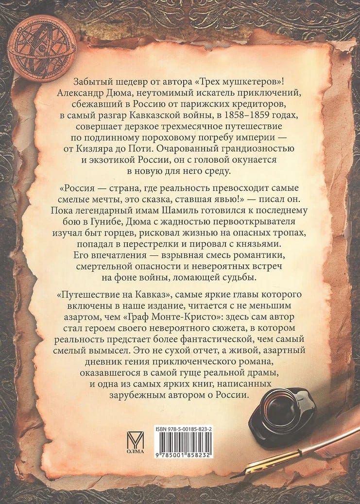Забытый шедевр от автора «Трех мушкетеров»! Александр Дюма, неутомимый искатель приключений, сбежавший в Россию от парижских кредиторов, в самый разгар Кавказской войны, в 1858–1859 годах, совершает дерзкое трехмесячное путешествие по подлинному пороховому погребу империи — от Кизляра до Поти.