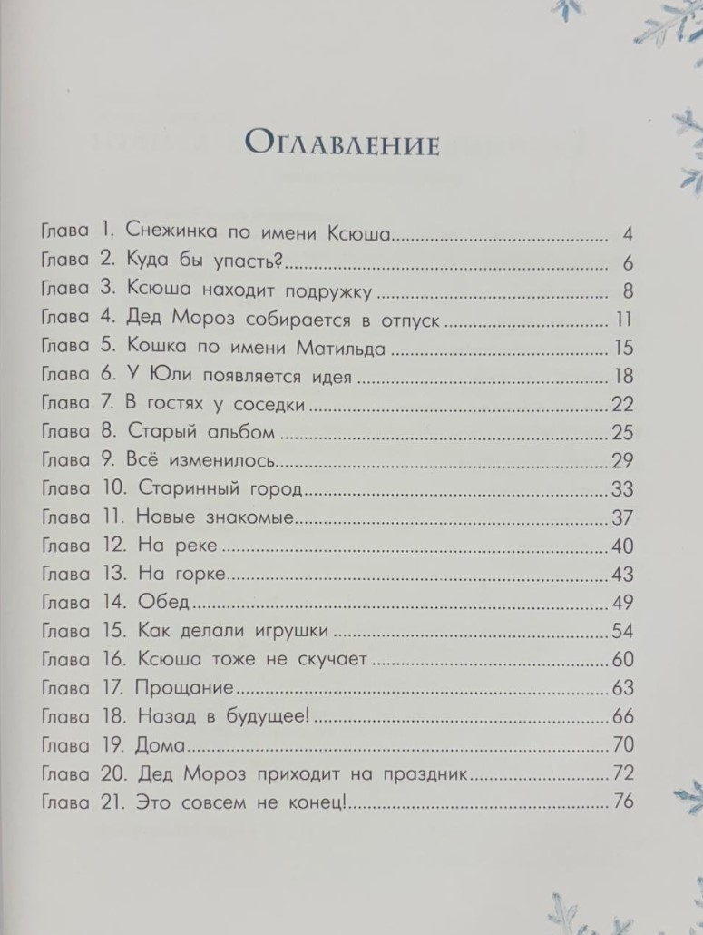 В полном чудес и загадок городе Санкт-Петербурге под Новый год происходят настоящие сказочные истории. А как же им не случаться, если Дед Мороз обиделся на всех детей и взрослых и вместо главного зимнего праздника собирается на курорт. И снег не выпадает. И девочке Юле кажется, что Новый год совсем не придёт. Возможно, и не пришёл бы, если бы самая маленькая снежинка по имени Ксюша не взялась за новогоднее дело. Сначала они с Юлей стали подругами, потом узнали тайну Деда Мороза, а потом… Потом случилось путешествие во времени!