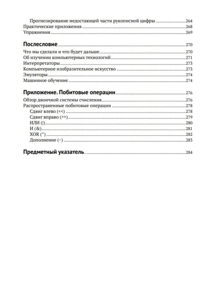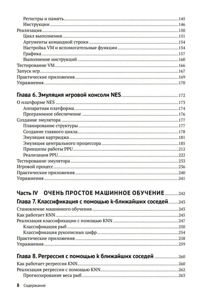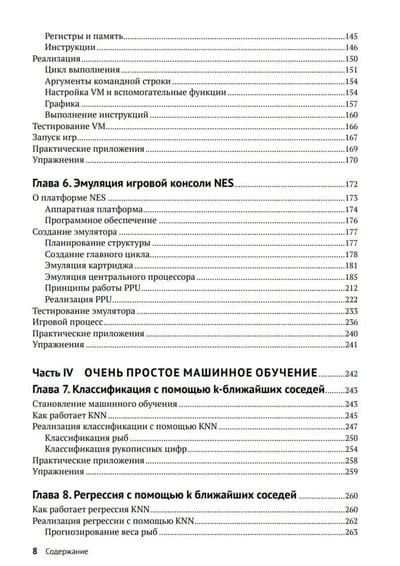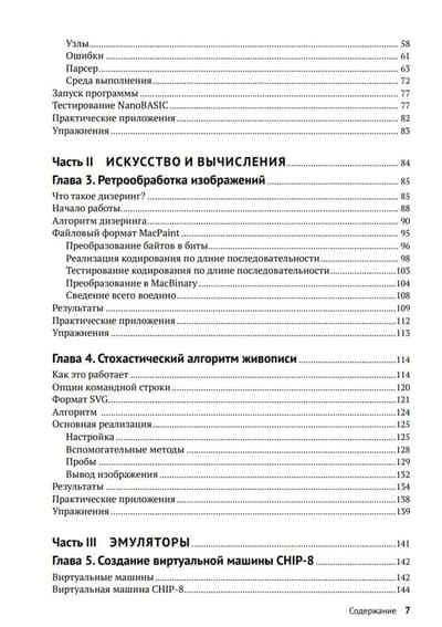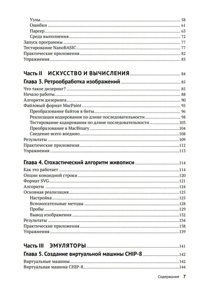 Книга охватывает широкий спектр тем в области информатики, с которыми сталкиваются разработчики, шагнувшие за пределы базовых навыков программирования. Автор поставил перед собой задачу заполнить возможные пробелы в образовании читателей и укрепить их знания, не прибегая к сложной математике и запутанному коду. Каждая глава книги пошагово описывает завершенный проект, раскрывающий один из конкретных аспектов информатики.