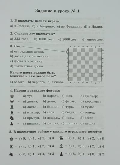 Перед вами - сборник заданий к каждому уроку книги «Шахматный учебник для детей и родителей» (В. Костров, Д. Давлетов)).