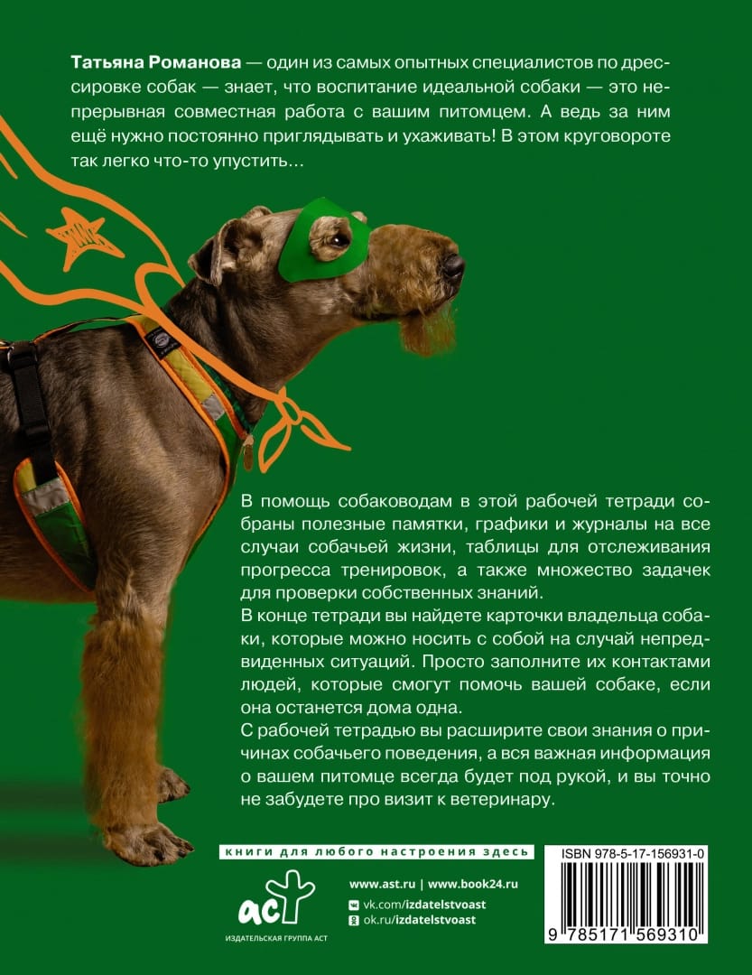 Татьяна Романова — один из самых опытных специалистов по дрессировке собак — знает, что воспитание идеальной собаки — это непрерывная совместная работа с вашим питомцем. А ведь за ним ещё нужно постоянно приглядывать и ухаживать! В этом круговороте так легко что-то упустить… В помощь собаководам в этой рабочей тетради собраны полезные памятки, графики и журналы на все случаи собачьей жизни, таблицы для отслеживания прогресса тренировок, а также множество задачек для проверки собственных знаний.В конце тетради вы найдете карточки владельца собаки, которые можно носить с собой на случай непредвиденных ситуаций. Просто заполните их контактами людей, которые смогут помочь вашей собаке, если она останется дома одна.С рабочей тетрадью вы расширите свои знания о причинах собачьего поведения, а вся важная информация о вашем питомце всегда будет под рукой, и вы точно не забудете про визит к ветеринару.