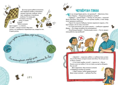 Ученики 303 Z класса ужасно боялись ошибок. Анюта не хотела плохо выступить на концерте, Карен переживал, что над ним будут смеяться, а Аюру просто становилось плохо от одной мысли о провале. Тогда их учитель Ром-Ром предложил вместе сделать работу над ошибками – но не обычную, а эмоциональную. Вместо чтения наизусть и письма ребята представляли свои эмоции в виде эмодзи, придумывали для них цвет, а еще рисовали свою...внутреннюю обезьянку! Ваш ребенок тоже может выполнить эти задания вместе с героями. Заодно он научится определять и контролировать свои эмоции, поймет, что ошибаться – это нормально и полезно, и запомнит, что любой цели можно достигнуть. Главное, не сдаваться и пробовать новое!