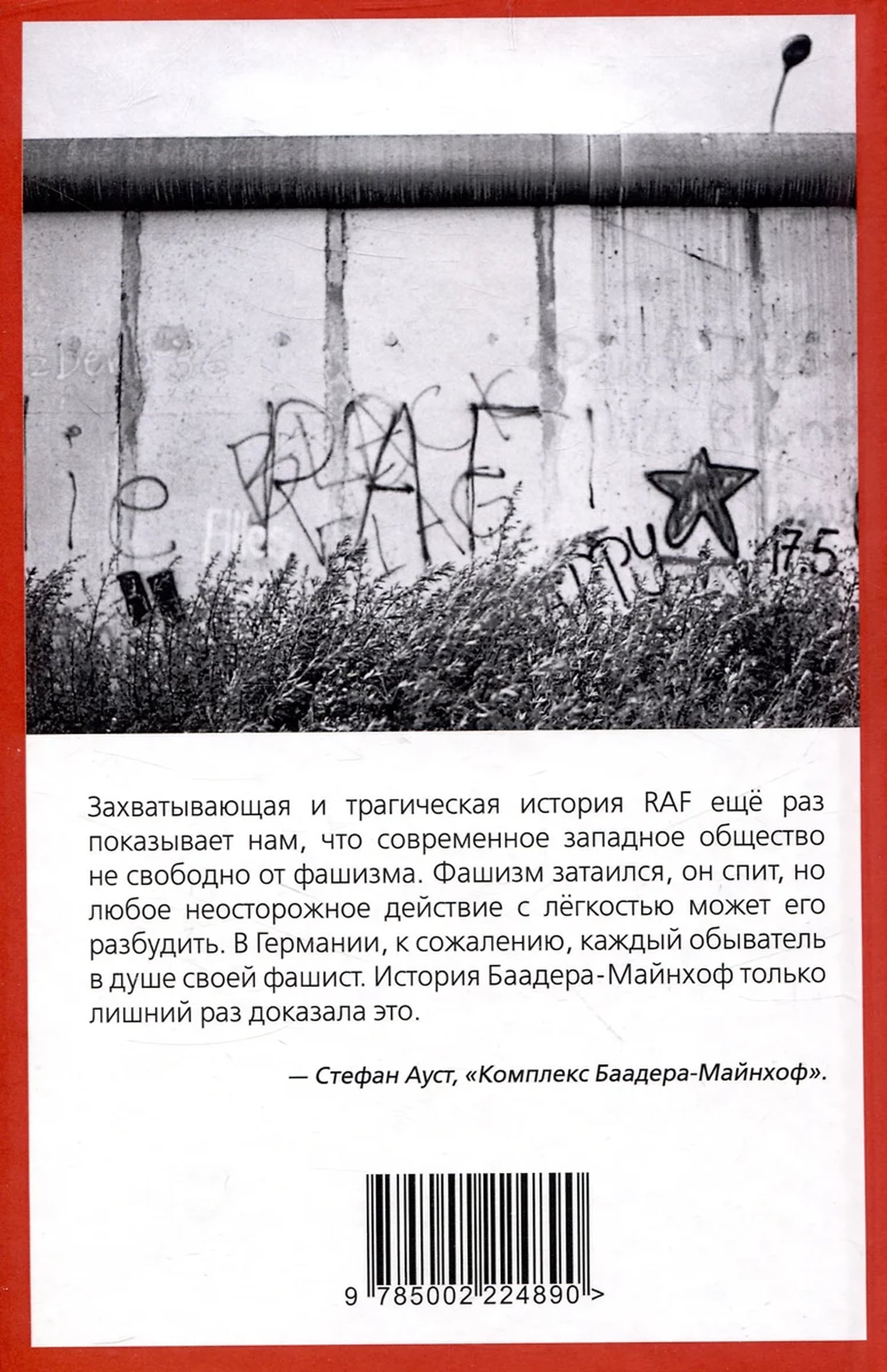 Фракция Красной Армии (RAF) — известнейшая леворадикальная организация 1970—1990-х годов. На протяжении многих лет она наводила ужас на правящещие круги ФРГ. В числе её жертв бывшие коменданты концлагерей, скрывавшиеся от правосудия нацисты, натовские военные и чиновники. Члены RAF прославились несгибаемой волей, беспощадностью к своим врагам, стойкостью к пыткам и любым, самым тяжёлым условиям содержания. Эта книга — уникальное не только для русского читателя, но и в принципе исследование истории RAF, её идеологии, практики и психологии отдельных участников. Книга написана человеком последовательных левых убеждений.