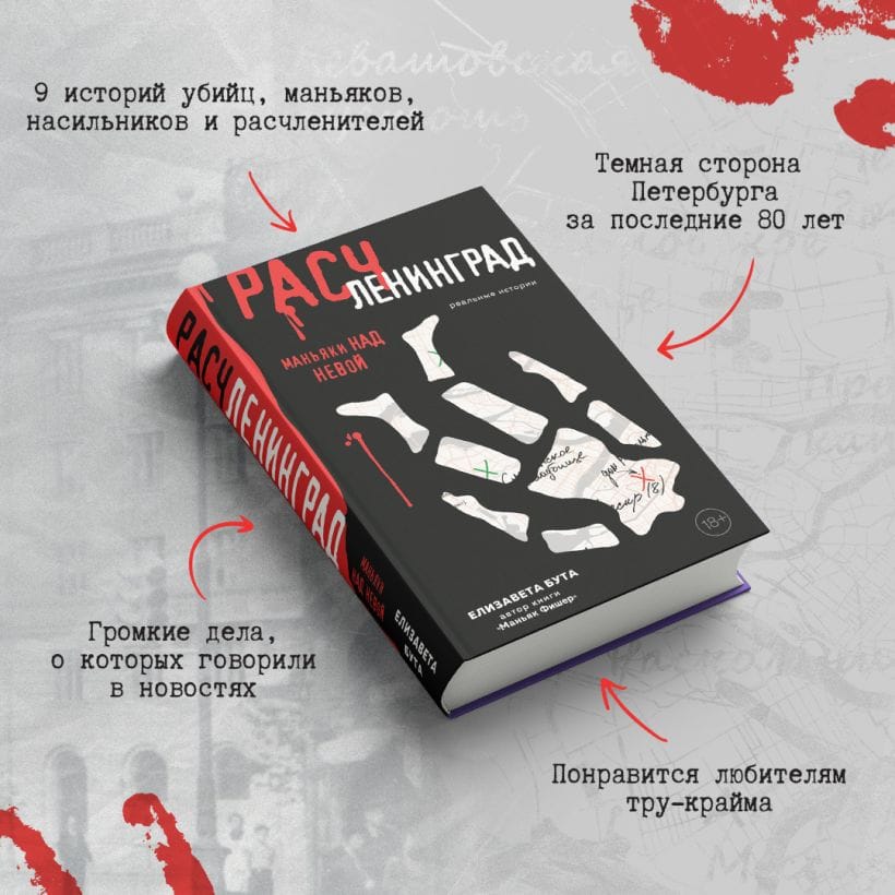 «Известный историк, экcперт по Наполеону, принес к реке рюкзак с руками любимой женщины». «Жена расчленила тело мужа, чтобы поклонники помнили о нем только хорошее…». Благодаря череде кровавых и шокирующих событий, описанных в этой книге, Петербург-Петроград-Ленинград приобрел четвертое, «народное», название — Расчленинград. Здесь девять подлинных историй, случившихся на невских берегах за последние 80 лет. Истории убийц, маньяков, насильников и расчленителей, произошедшие в прекрасном и пугающем городе. Елизавета Бута — криминальный психолог, автор книги «Маньяк Фишер» и других расследований реальных преступлений.