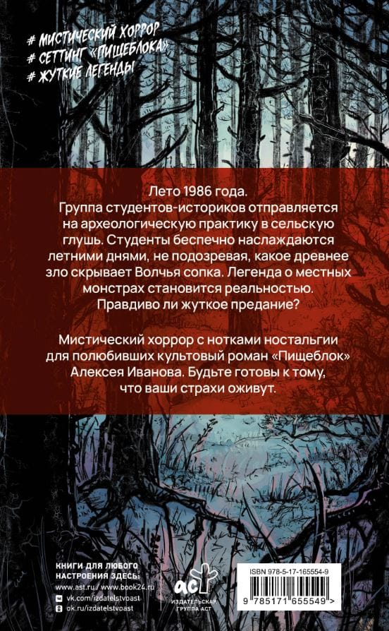 Лето 1986 года. Группа студентов-историков отправляется на археологическую практику в сельскую глушь. Студенты беспечно наслаждаются летними днями, не подозревая, какое древнее зло скрывает Волчья сопка. Легенда о местных монстрах становится реальностью. Правдиво ли жуткое предание? Мистический хоррор с нотками ностальгии для полюбивших культовый роман «Пищеблок» Алексея Иванова. Будьте готовы к тому, что ваши страхи оживут.