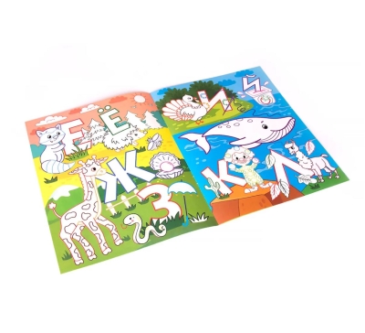 Раскраска для самых маленьких «‎Первый алфавит»‎ изготовлена из плотной бумаги. Все рисунки выполнены широким разноцветным контуром, расположены на цветном фоне. Раскраска не только знакомит вашего ребенка с буквами, но и развивает его моторику, учит усидчивости, аккуратности, терпению. Раскраска станет приятным и полезным увлечением для вашего ребенка!
