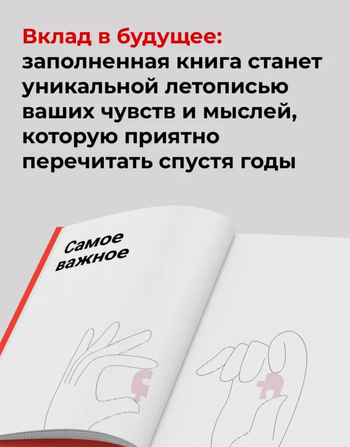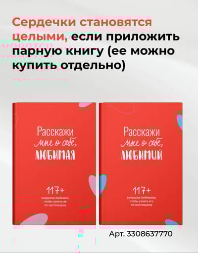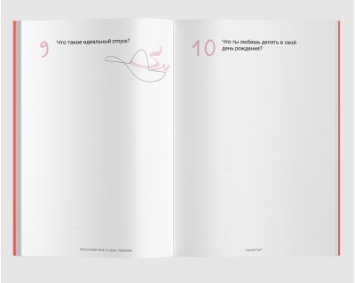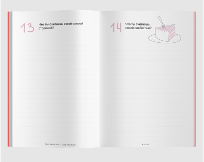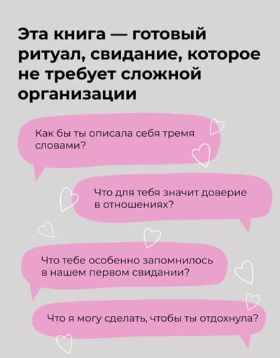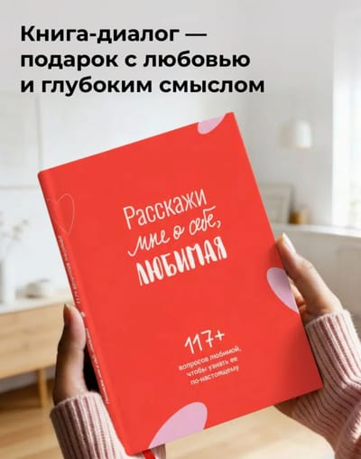 Это не просто анкета, а бережно созданное пространство для диалога. Каждый ответ — штрих к портрету любимой. Каждый ответ — мост к еще большей эмоциональной близости. Книга помогает не только сохранить воспоминания, но и открыть новые грани в, казалось бы, хорошо знакомом человеке. Ответы, рисунки и фото превратят этот дневник в уникальный артефакт, «капсулу времени».