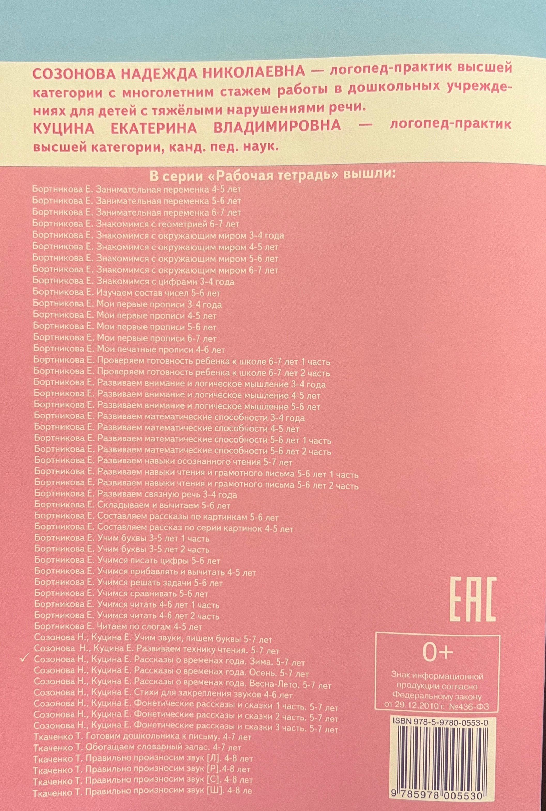 Рассказы о временах года. Зима. Рабочая тетрадь для детей 5 - 7 лет
