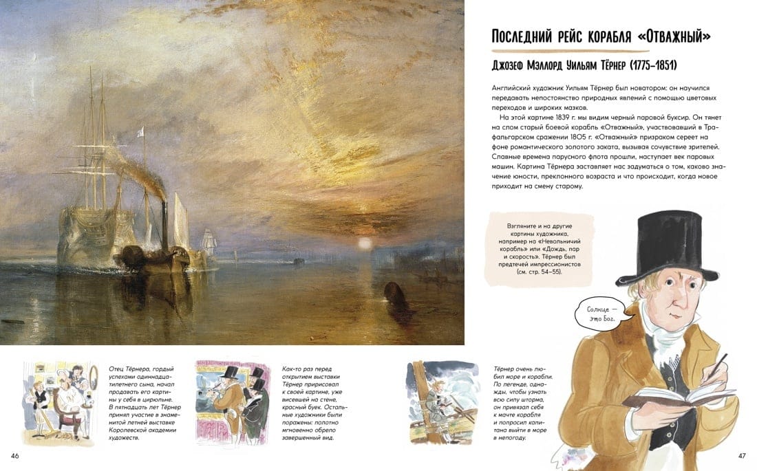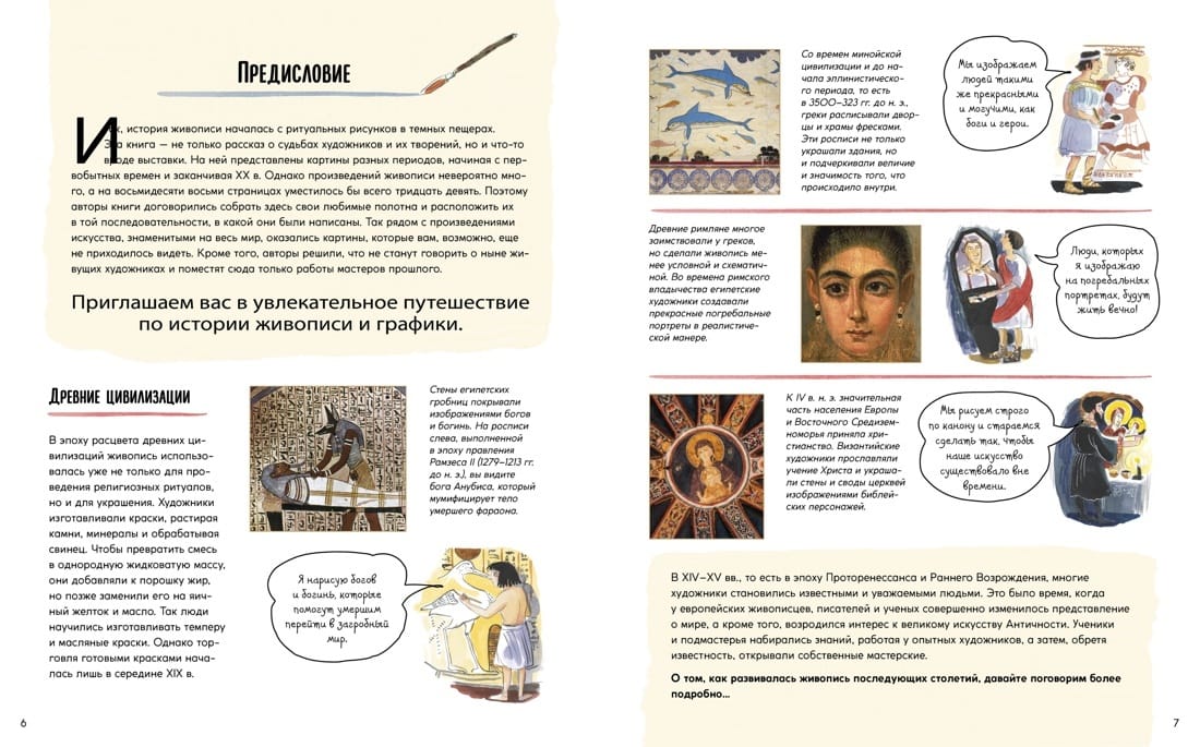 Отправьтесь в удивительное путешествие сквозь время и исследуйте историю изобразительного искусства – от наскальных рисунков в пещере Ласко до ярких, эмоциональных работ Жан-Мишеля Баския. На страницах этой книги вы найдете полотна, знаменитые на весь мир, и замечательные, но малоизвестные творения. Взгляните на холсты Рембрандта, Пабло Пикассо, Фриды Кало и Уильяма Тёрнера. Узнайте, как развивалось и преображалось искусство с течением времени. Вас ждут истории великих мастеров и рассказы о подлинных шедеврах.