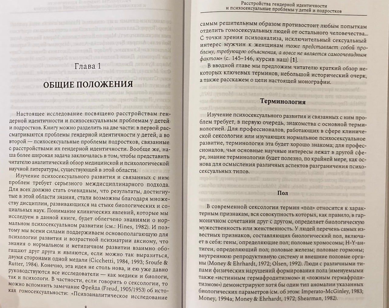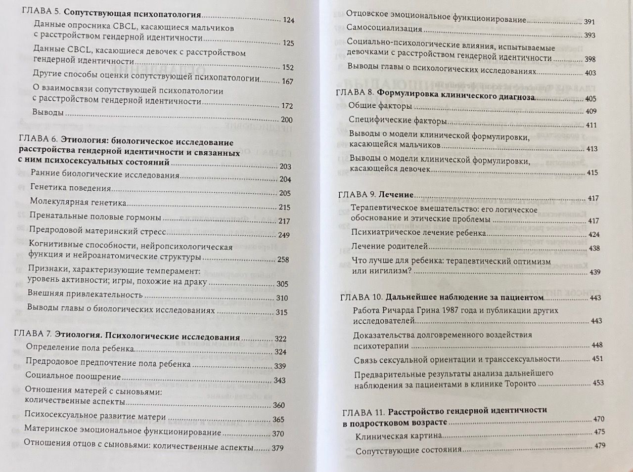Раздел, посвященный детям (главы 2–10), предлагает подробный анализ расстройств гендерной идентичности как у девочек, так и у мальчиков, что включает в себя важнейшую феноменологию, медицинскую, биологическую, психосоциальную этиологию, клиническую формулировку, лечение, долгосрочное наблюдение.