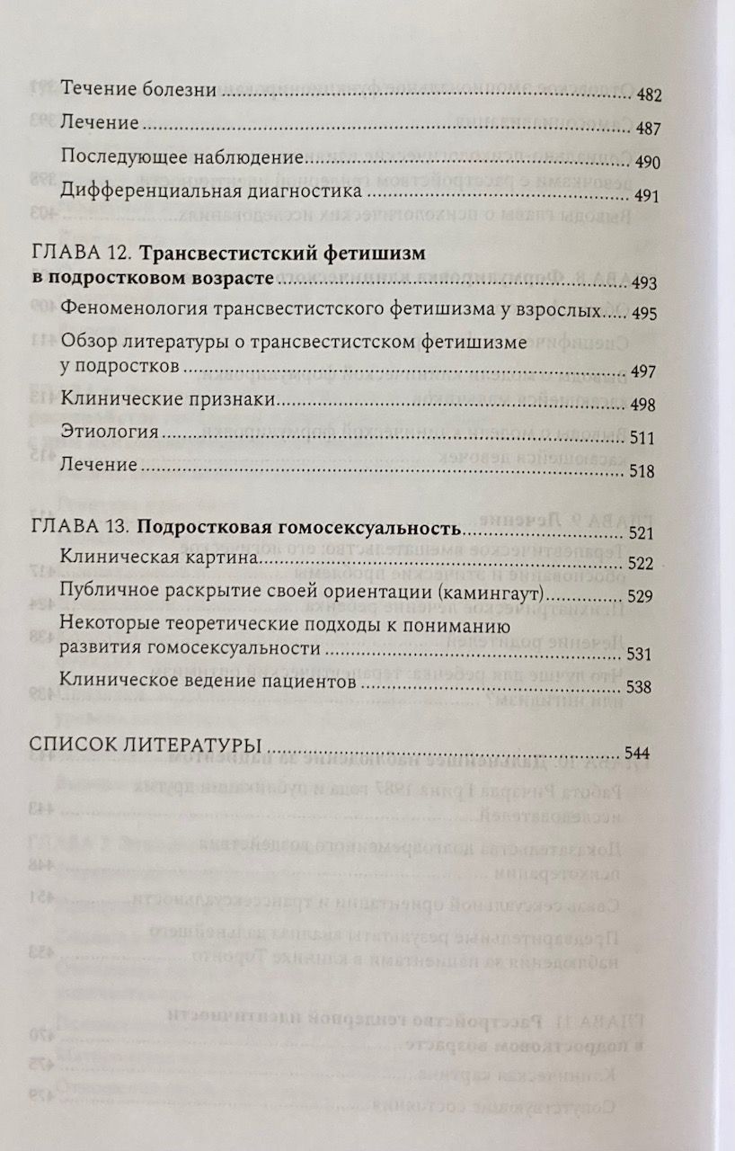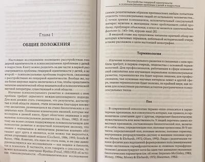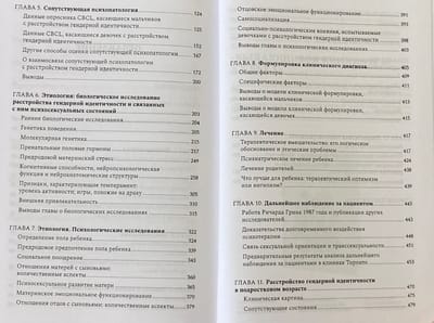 Раздел, посвященный подросткам (главы 11–13), предлагает сведения о расстройствах гендерной идентичности, трансвестистском фетишизме и гомосексуальности. Оба раздела включают множество материалов из собственной врачебной практики авторов и содержат попытку объединить все эти случаи с теоретическими разработками, известными из обширной литературы на данную тему, которая стала особенно богата за последние три десятилетия.