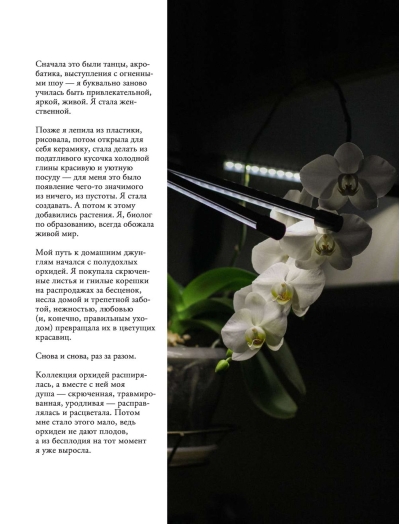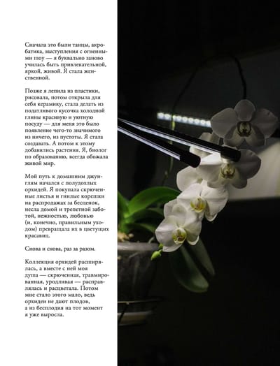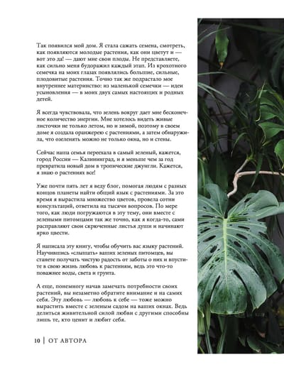 Екатерина Кузнецова @spottykit — популярный блогер, биолог, автор обучающих программ по уходу за комнатными растениями. Большую часть своей жизни она занимается домашним озеленением и помогает людям создавать уют и красоту в доме с помощью растений. Мы к этому давно привыкли, но вот неприятный факт о наших жилищах: в них очень плохое освещение, ведь солнцу приходится пробиваться сквозь соседние дома, козырьки, балконы или деревья. Все растения, которые оказываются у нас дома, становятся «растущими в темноте». Но это не приговор: природа прекрасна и многогранна, главное — знать, как к ней подступиться! Понемногу начав замечать потребности своих растений, вы незаметно обратите внимание и на самих себя. Эту любовь — любовь к себе — тоже можно вырастить вместе с зеленым садом на ваших окнах. Ведь делиться живительной силой любви с другими способны лишь те, кто ценит и любит себя. А еще, кажется, никто не умеет быть таким благодарным, как комнатные растения в наших горшках. И я научу вас слышать, о чем они с вами говорят. Здесь вы найдете не только ответы на свои вопросы, но и практические советы, как максимально использовать ограниченный свет, а также 30 подробных профайлов комнатных растений, приспособленных к условиям низкой освещенности. Эта книга сделает для вас уход за растениями понятным, чтобы однажды вы смогли озеленить свой дом самыми необычными представителями флоры нашей зеленой планеты.