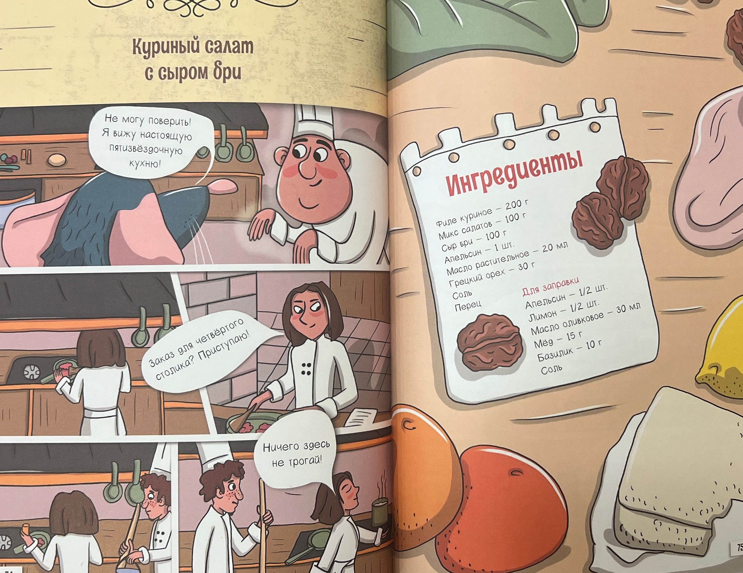 Уникальная книга рецептов «Рататуй» - идеальное приобретение для всех любителей кулинарии и французской кухни. Эта книга, созданная специально для детей, станет отличным подарком на любой праздник или день рождения. Откройте мир французской кухни с книгой по кулинарии с рецептами. Простые пошаговые рецепты доступны всем: взрослым, подросткам и конечно детям, а каждый шаг проиллюстрирован яркими картинками с героями любимого мультфильма Рататуй.