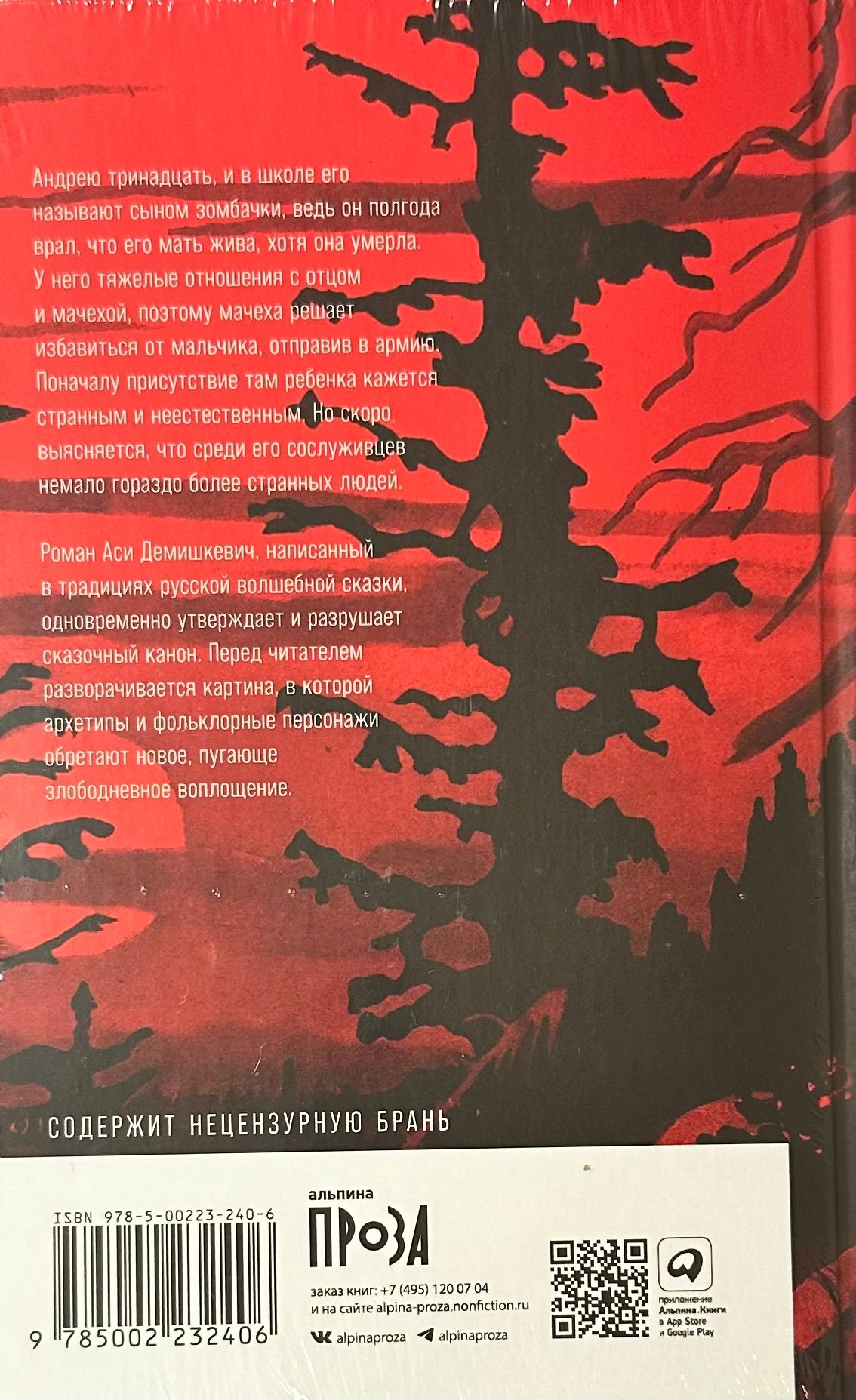 Андрею тринадцать, и в школе его называют сыном зомбачки, ведь он полгода врал, что его мать жива, хотя она умерла. У него тяжелые отношения с отцом и мачехой, поэтому мачеха решает избавиться от мальчика, отправив в армию. Поначалу присутствие там ребенка кажется странным и неестественным. Но скоро выясняется, что среди его сослуживцев немало гораздо более странных людей. Роман Аси Демишкевич, написанный в традициях русской волшебной сказки, одновременно утверждает и разрушает сказочный канон. Перед читателем разворачивается картина, в которой архетипы и фольклорные персонажи обретают новое, пугающе злободневное воплощение.