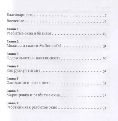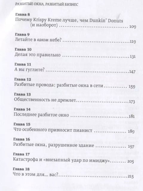 Книга о том, насколько важны нюансы при ведении бизнеса. Закрывая глаза на «разбитое окно», можно довести компанию до ее полного краха, когда капля за каплей будут накапливаться и повторяться с виду ничем не примечательные, но очень значимые регулярные происшествия.