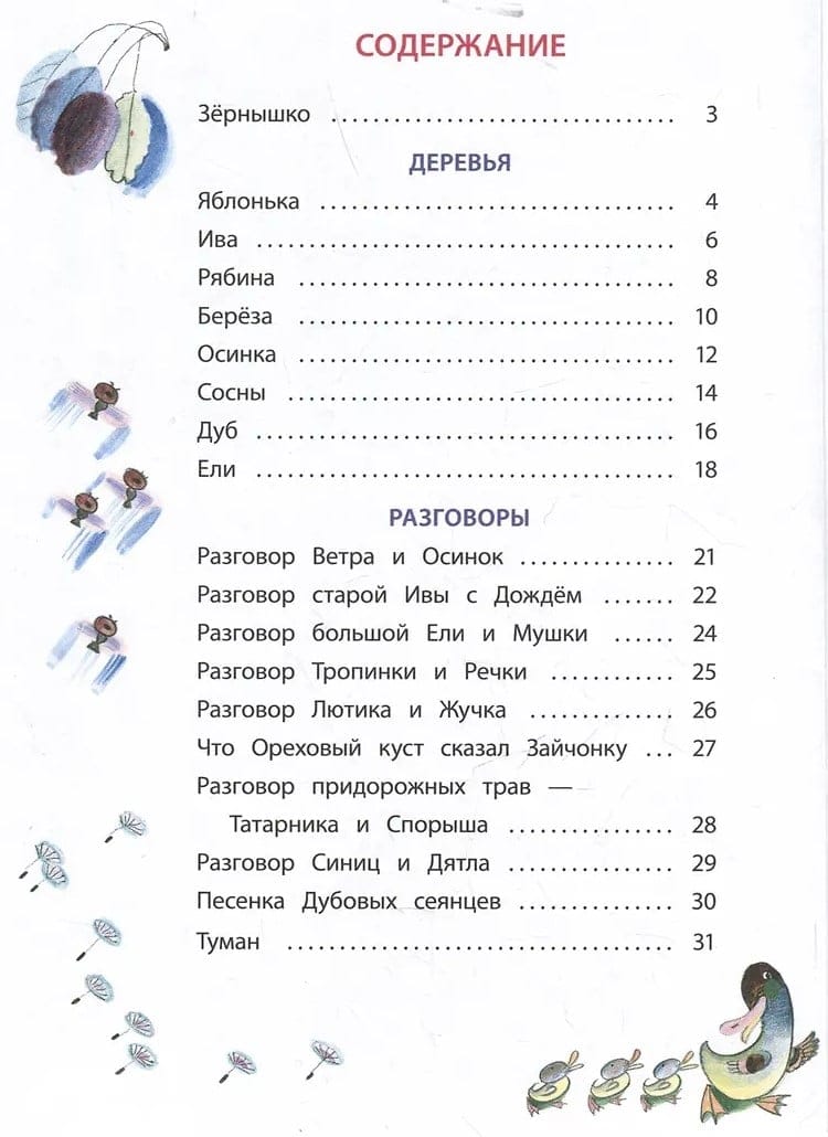 Прочитав стихи, собранные в этой книге, вы узнаете, какой характер у того или иного дерева и о чём растения болтают с ветром и дождём, с птицами и насекомыми. В них много сказочного, ведь рядом с самыми обычными вещами происходят чудеса: поют песенки дубовые сеянцы, ведут Разговоры деревья, цветы, травы и насекомые, звери и птицы.