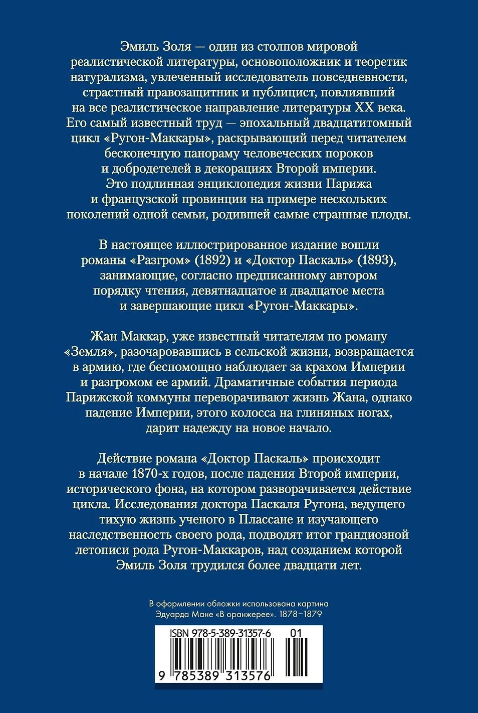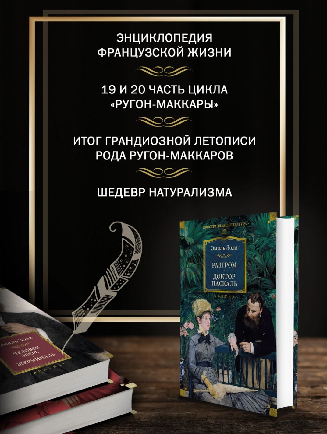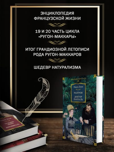 В настоящее иллюстрированное издание вошли романы «Разгром» (1892) и «Доктор Паскаль» (1893), занимающие, согласно предписанному автором порядку чтения, девятнадцатое и двадцатое места и завершающие цикл «Ругон-Маккары».