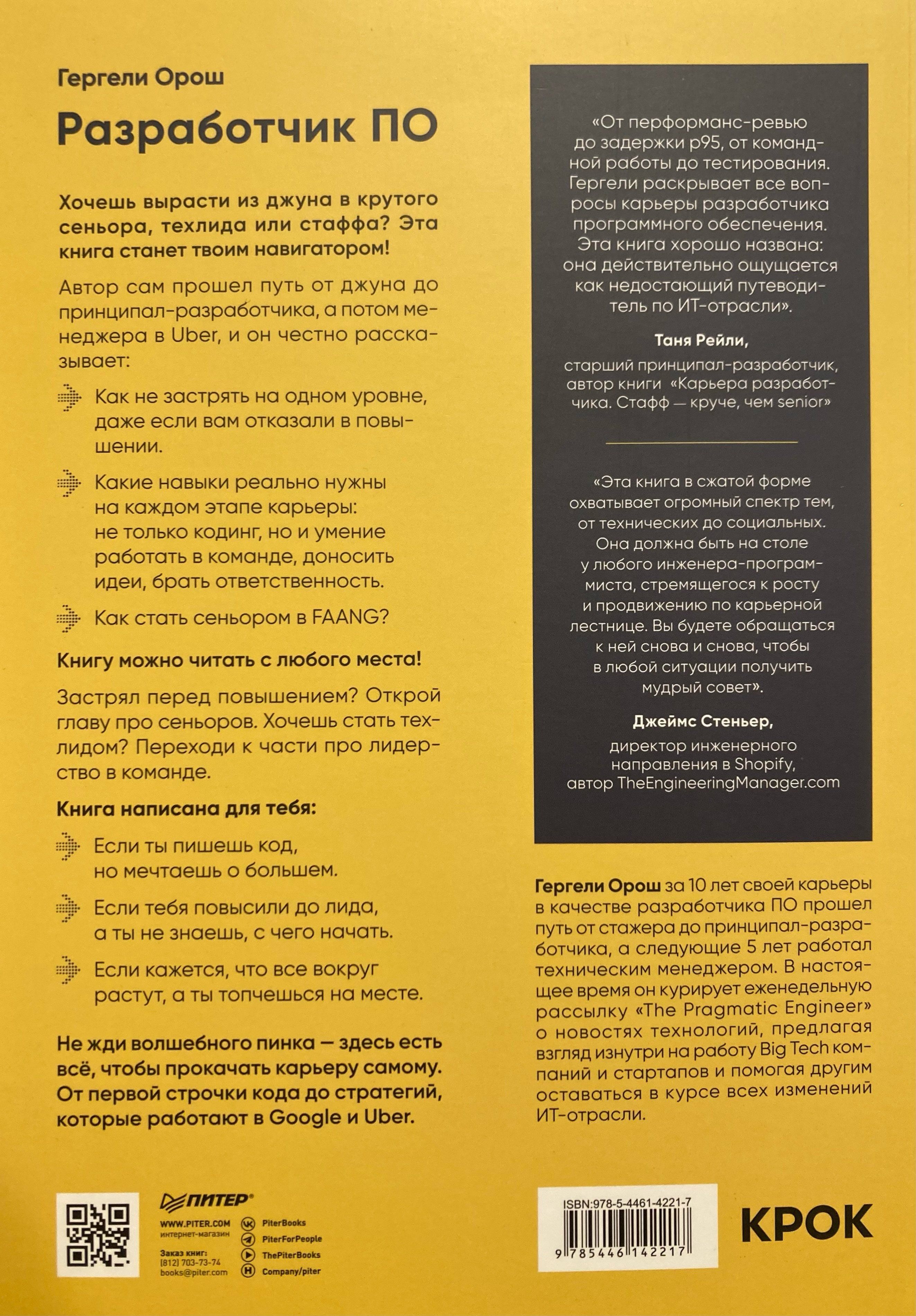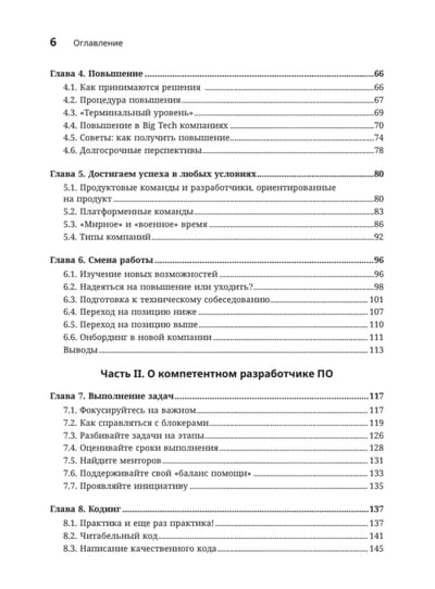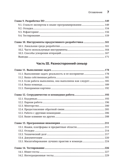 Книгу можно читать с любого места! Застрял перед повышением? Открой главу про сеньоров. Хочешь стать техлидом? Переходи к части про лидерство в команде.