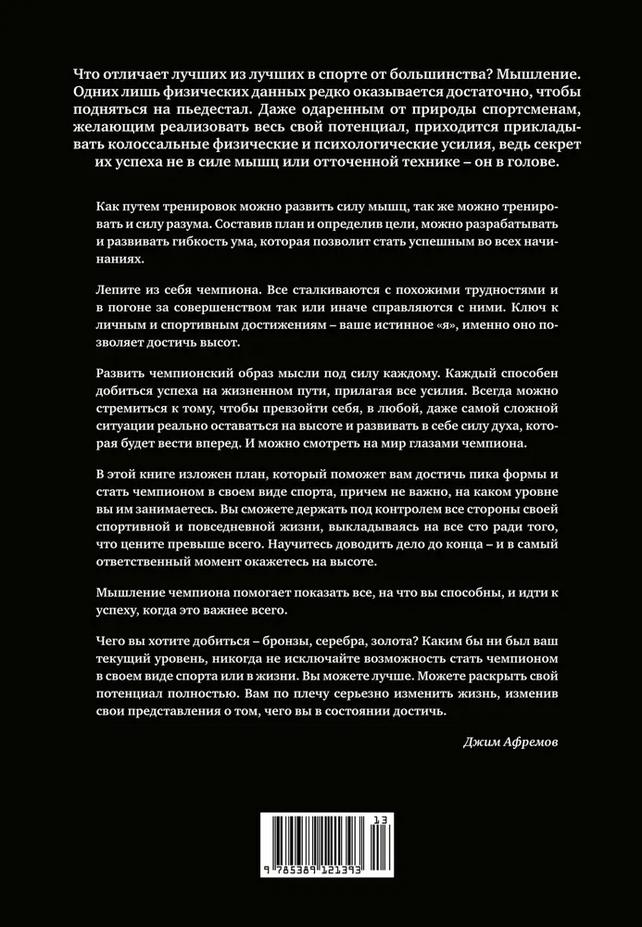 У всех людей больше общего, чем различий, и любому по силам развить те качества, которые мы ценим в других. Зачем пытаться просто их копировать, если можно максимально реализовать собственный потенциал и таланты и достичь уровня любимых спортсменов? Придерживаясь этого принципа и работая во всю силу, вы лепите из себя чемпиона и добиваетесь совершенства. Ваша основная задача – развить чемпионский образ мыслей. Если хотите показывать результаты как у лучших из лучших, нужно и думать как они.