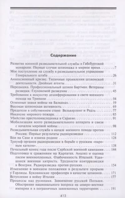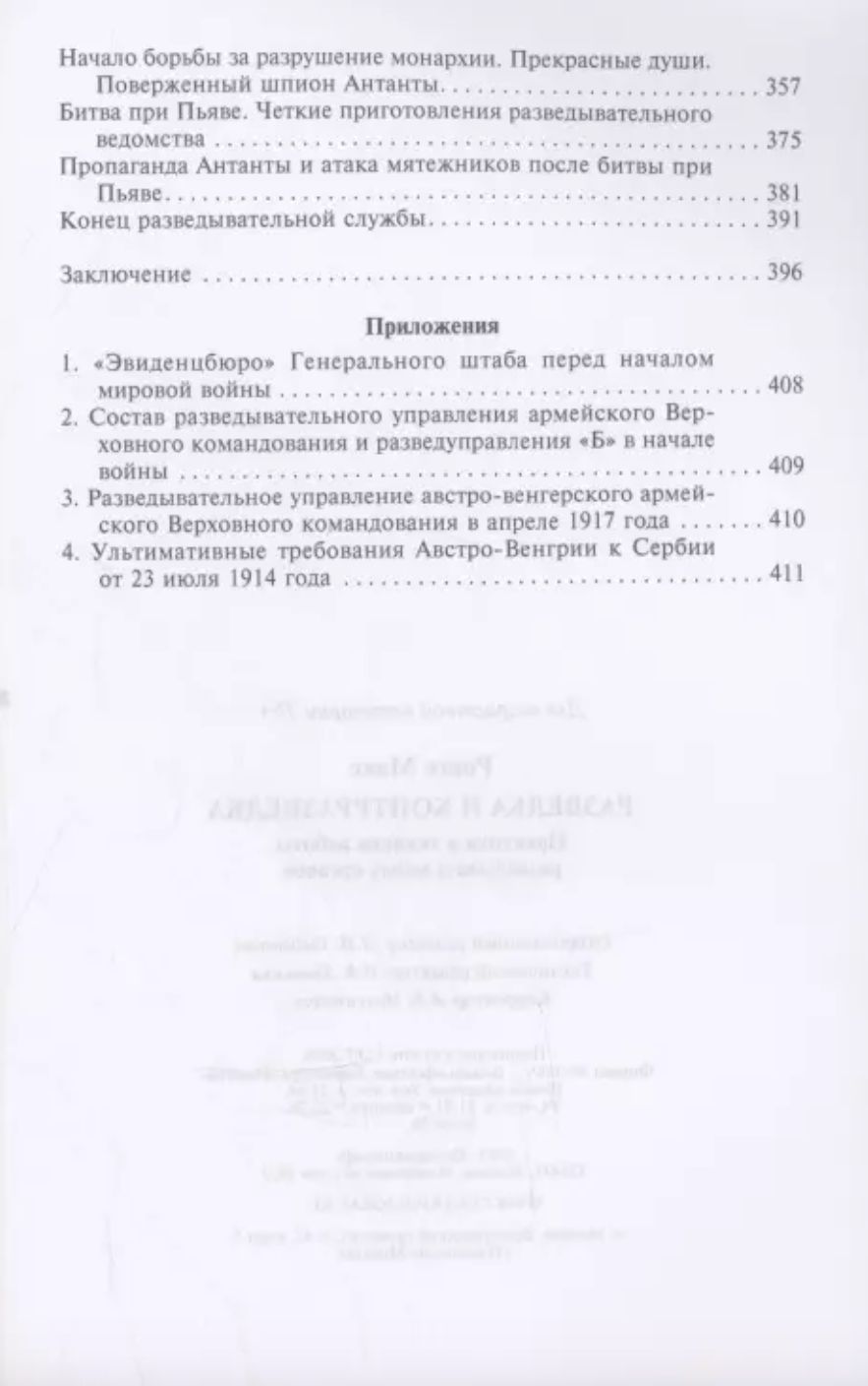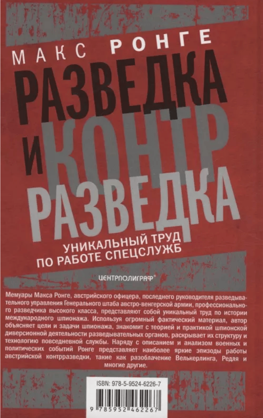 Мемуары Макса Ронге, австрийского офицера, последнего руководителя разведывательного управления Генерального штаба австро-венгерской армии, профессионального разведчика высокого класса, представляют собой уникальный труд по истории международного шпионажа. Используя огромный фактический материал, автор объясняет цели и задачи шпионажа, знакомит с теорией и практикой шпионской диверсионной деятельности разведывательных органов, раскрывает их структуру и технологию повседневной службы. Наряду с описанием и анализом военных и политических событий Ронге представляет наиболее яркие эпизоды работы австрийской контрразведки, такие как разоблачение Велькерлинга, Редля и многие другие.Карты, схемы и фотоматериалы дополняют и поясняют повествование.