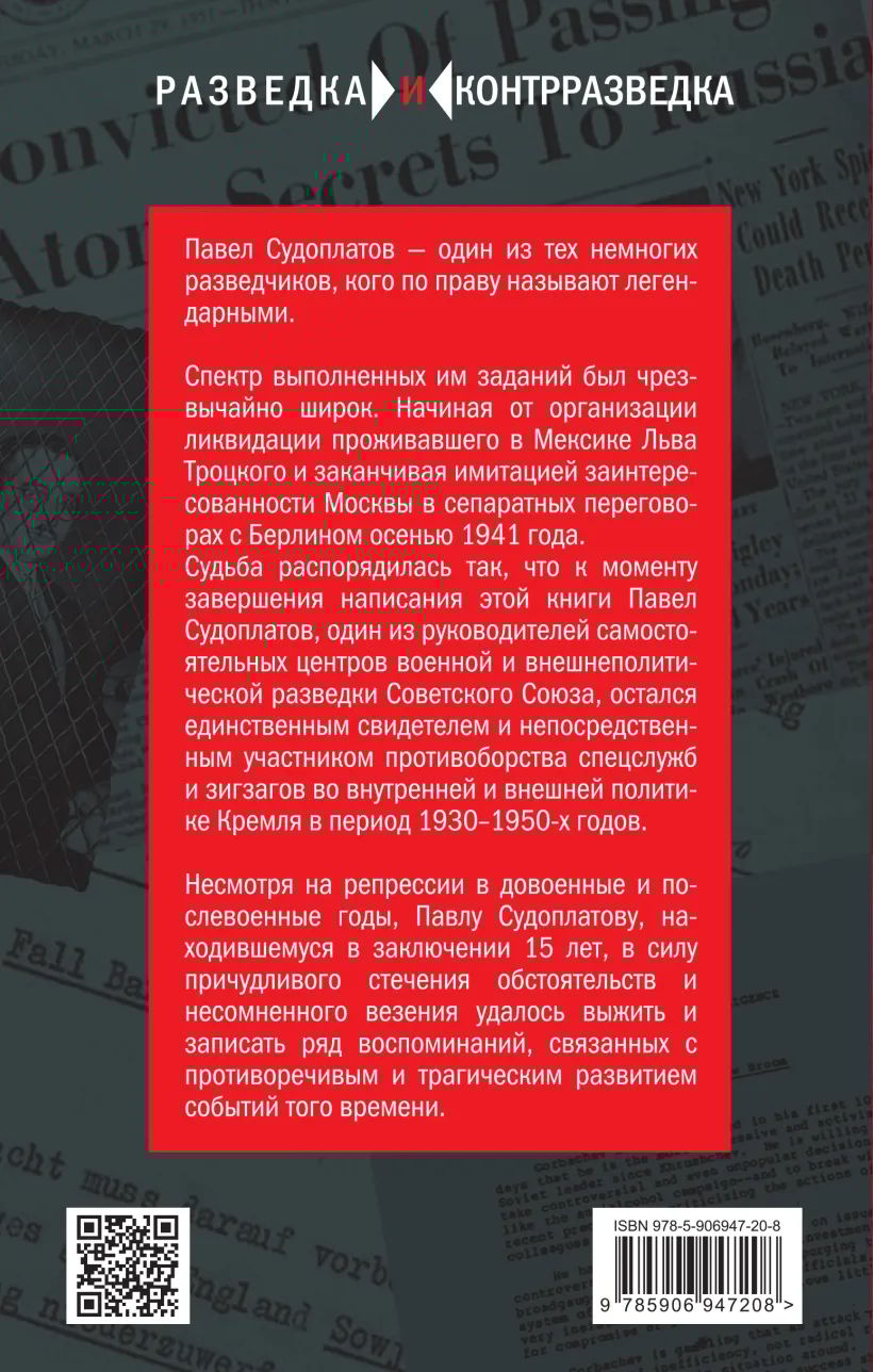 Несмотря на репрессии в довоенные и послевоенные годы, Павлу Судоплатову, находившемуся в заключении 15 лет, в силу причудливого стечения обстоятельств и несомненного везения, удалось выжить и записать ряд воспоминаний, связанных с противоречивым и трагическим развитием событий того времени.