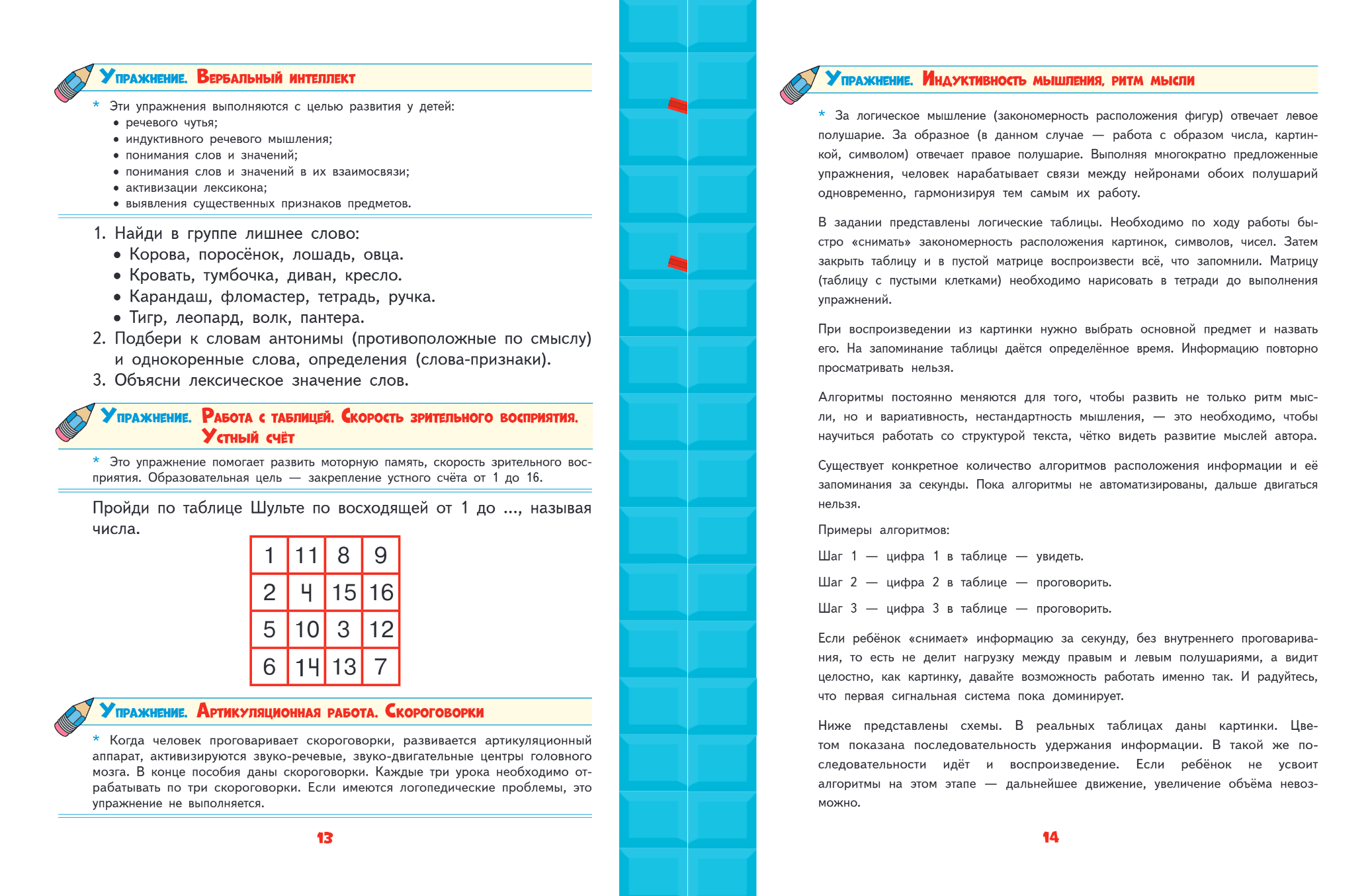 Выполняя занимательные игровые задания, ребёнок познакомится со звуками; разовьёт мышление, артикуляционный аппарат, слуховую, зрительную, моторную и наглядно-образную память; повысит скорость зрительного восприятия и улучшит концентрацию и переключаемость внимания; научится работать с текстом и отвечать на вопросы; потренирует навыки устного счёта; разовьёт речь; расширит кругозор и, что самое главное, получит инструменты для работы с информацией, т. е. научится классифицировать, систематизировать, группировать, объединять, сравнивать, комбинировать информацию. Именно эти навыки позволят ребёнку успешно учиться в школе и раскрыть все свои таланты.