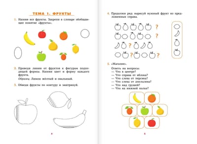 Данный тренажёр направлен на развитие речи ребёнка. Представленные в пособии логопедические игры погружают дошкольника в изучение лексических тем в увлекательной форме. С помощью игровых заданий развивается не только речь ребёнка, но и внимание, мышление, память, восприятие. Работа с тренажёром способствует также обогащению словарного запаса, развитию пространственных представлений, графических навыков, умения строить логические умозаключения, а также выделять и классифицировать предметы.