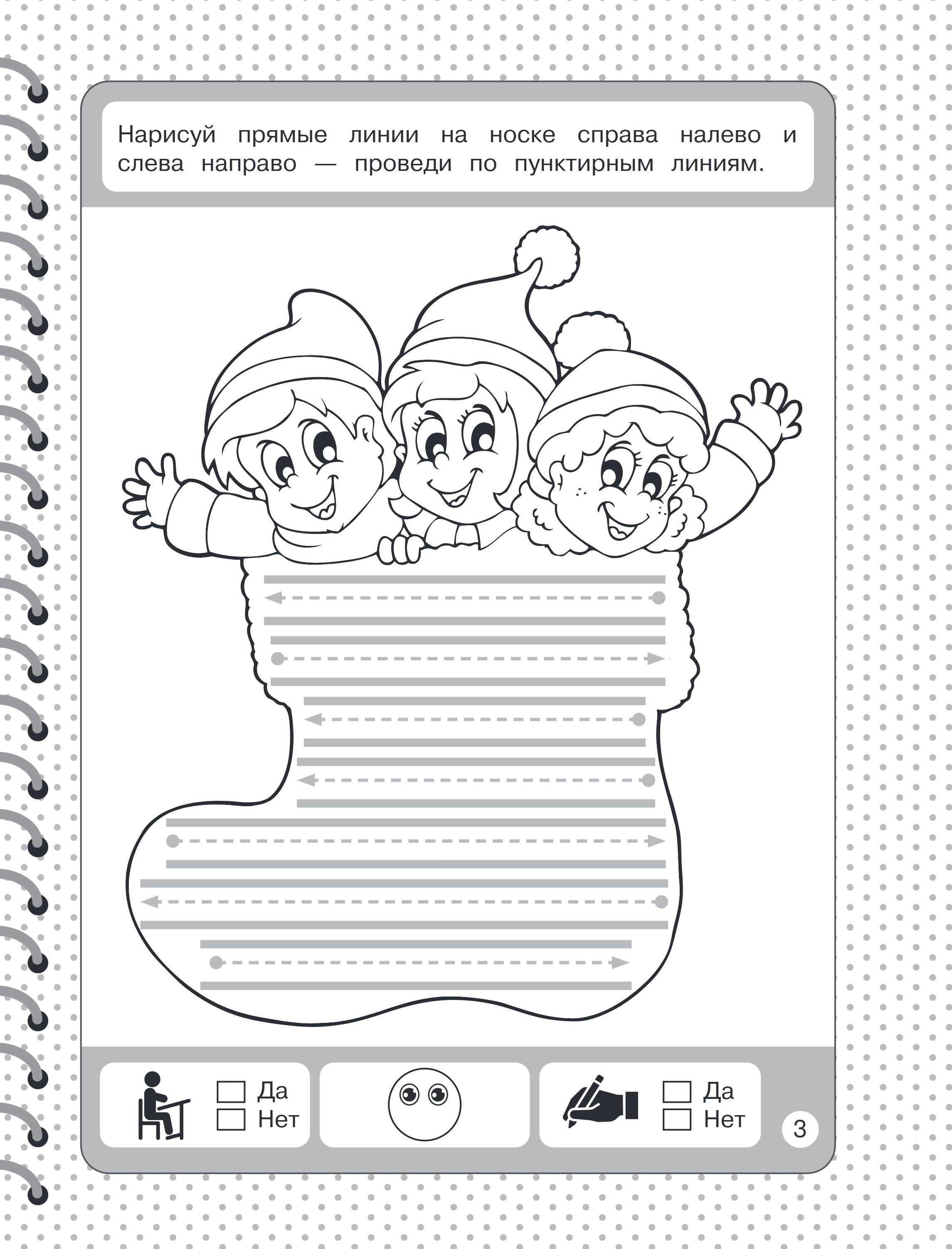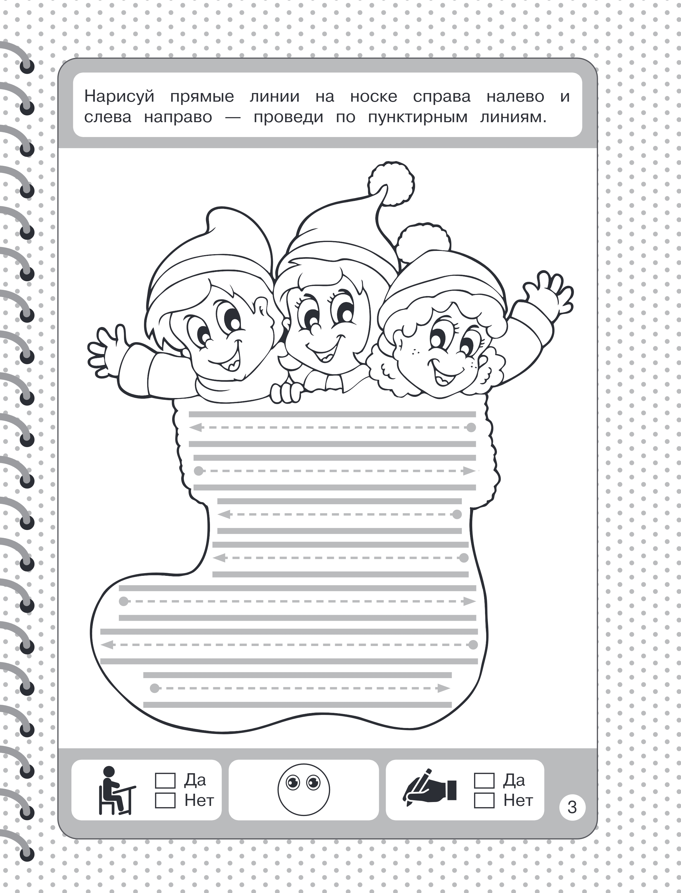 Книга издательства «Эксмо» — это настоящая находка для родителей, чьи дети скоро пойдут в 1 класс. Пособие, соответствующее ФГОС, четко структурировано и поможет быстро и качественно подготовить руку ребенка к письму. Крупные занимательные картинки будут мотивировать ребенка. Занимаясь, дошкольник будет аккуратно обводить по пунктиру и проводить разные типы линий, штриховать, проходить лабиринты, рисовать по точкам и клеткам, дорисовывать половинки предметов. Внизу каждой страницы имеются значки для оценки выполненных заданий. Поставив галочку в клетках «да» или «нет», ребенок сможет проконтролировать себя, а нарисовав ротик у смайлика вверх или вниз — оценить результат (хорошо / не очень хорошо). Постоянная работа с пособием поможет дошкольнику развить мелкую моторику, графические навыки, внимание, творческие способности, стать более усидчивым и аккуратным.