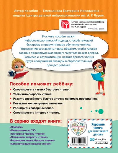 В основе книги Емельяновой Е. Н., практикующего педагога-нейропсихолога «Центра детской нейропсихологии им. А. Р. Лурия», признанного специалиста в этой области, автора многих популярных развивающих пособий, лежит нейропсихологический подход, способствующий быстрому и эффективному обучению чтению.