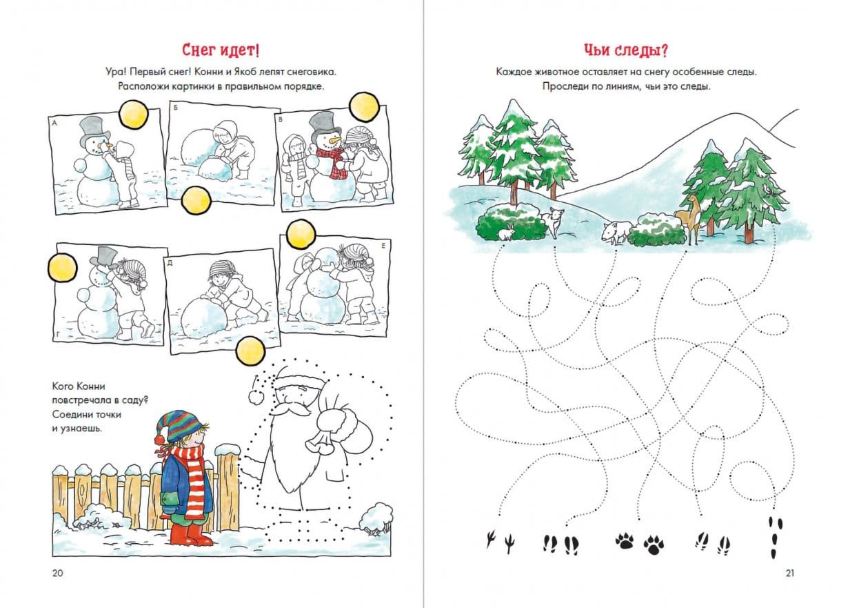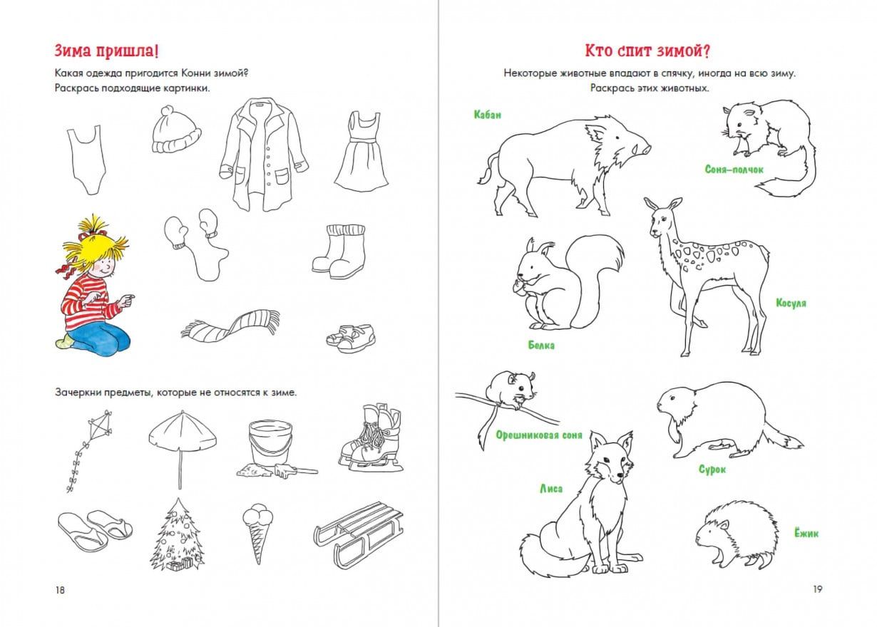 Давайте потренируемся различать времена года! Вместе с Конни малыш узнает, кто впадает в спячку, а кто улетает в теплые края; вспомнит, какие праздники мы отмечаем зимой, а какие весной, и придумает себе интересные занятия для летних каникул. Бонус - игра «домино», которую ребенок сможет самостоятельно раскрасить, вырезать и играть с друзьями.