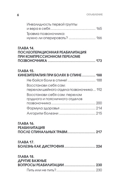 Как говорит врач, каждая ситуация требует индивидуального подхода. Травмы и операции у каждого человека уникальны и, в каком-то смысле, эксклюзивны, а потому универсального средства для восстановления нет и быть не может. Эта книга дает необходимые ориентиры для понимания природы болезни или состояния организма и предлагает подходы к лечению, которые под грамотным надзором специалиста могут поставить вас на ноги.