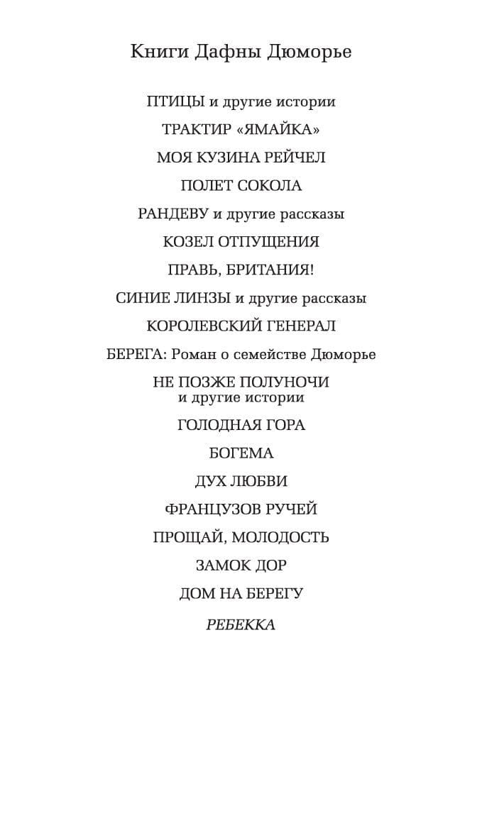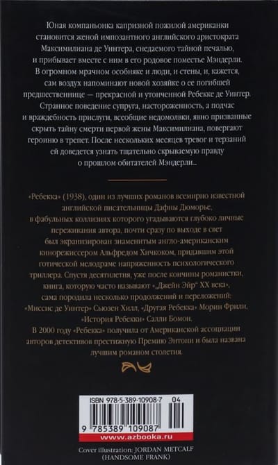 Юная компаньонка капризной пожилой американки становится женой импозантного английского аристократа Максимилиана де Уинтера, терзаемого тайной печалью, и прибывает вместе с ним в его родовое поместье Мэндерли. В огромном мрачном особняке и люди, и стены, и, кажется, сам воздух напоминают новой хозяйке о ее погибшей предшественнице – прекрасной и утонченной Ребекке де Уинтер. Странное поведение супруга, настороженность, а подчас и враждебность прислуги, всеобщие недомолвки, явно призванные скрыть тайну смерти первой жены Максимилиана, повергают героиню в трепет. После нескольких месяцев мучительных переживаний ей доведется узнать тщательно скрываемую правду о прошлом обитателей Мэндерли…