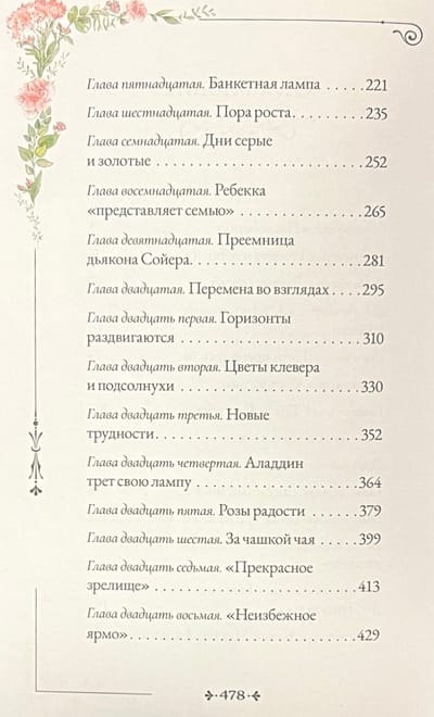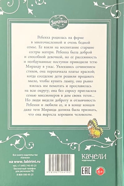 Ребекка родилась на ферме в многочисленной и очень бедной семье. Ее взяли на воспитание старшие сестры матери. Ребекка была доброй и способной девочкой, но ее рассеянность и необдуманные поступки приводили тетю Миранду в ужас. Увлекшись сочинением стихов, она перепачкала платье краской; когда соседские дети решили продавать мыло, чтобы купить лампу, она рьяно взялась им помогать и прославилась на всю округу; она без спросу пригласила семью миссионеров в дом своих теток… Но люди видели доброту и отзывчивость Ребекки и любили ее, и в конце концов даже тетя Миранда должна была признать, что она выросла хорошим человеком. Для детей младшего школьного возраста.