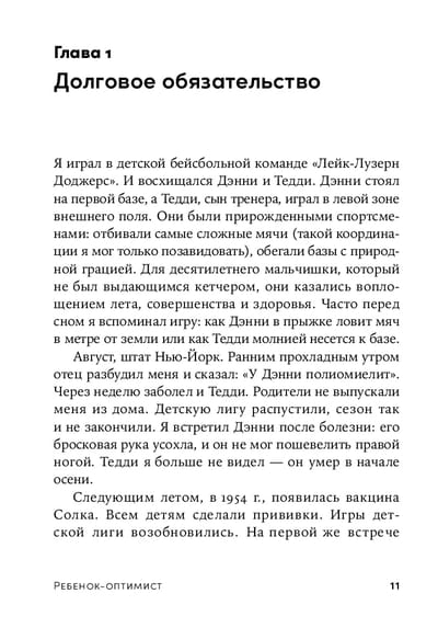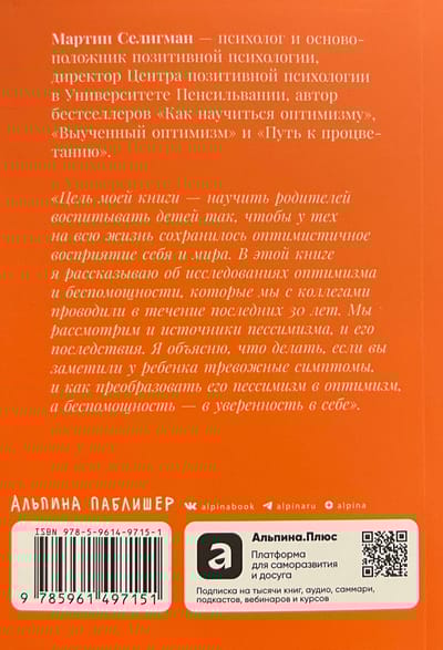 Мартин Селигман, всемирно известный психолог и основоположник позитивной психологии, утверждает, что правильные реакции ребенка на неудачи и его поддержка со стороны родителей становятся определяющими для его будущего становления. Автор утверждает, что родители способны научить детей применять навыки оптимизма, которые могут победить депрессию, повысить успеваемость в школе и улучшить физическое здоровье. Эти навыки дают детям необходимую им устойчивость, чтобы с уверенностью подойти к подростковому возрасту и взрослой жизни.
