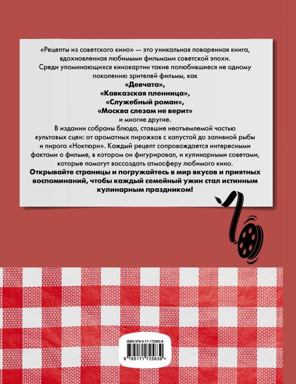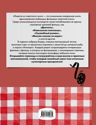«Рецепты из советского кино» — это уникальная поваренная книга, вдохновленная любимыми фильмами советской эпохи. Среди упоминающихся кинокартин такие полюбившиеся не одному поколению зрителей фильмы, как «Девчата», «Кавказская пленница», «Служебный роман», «Москва слезам не верит» и многие другие.