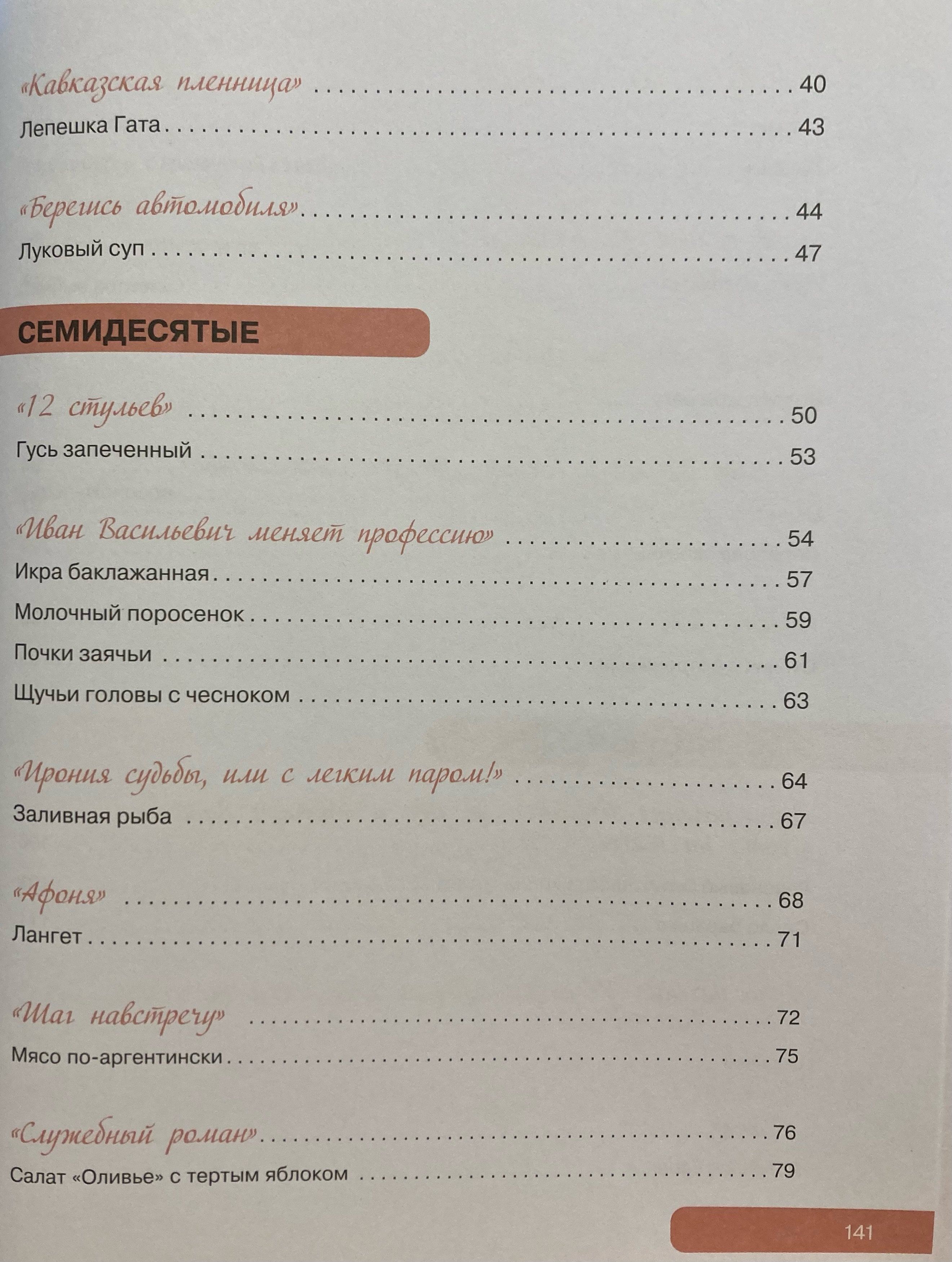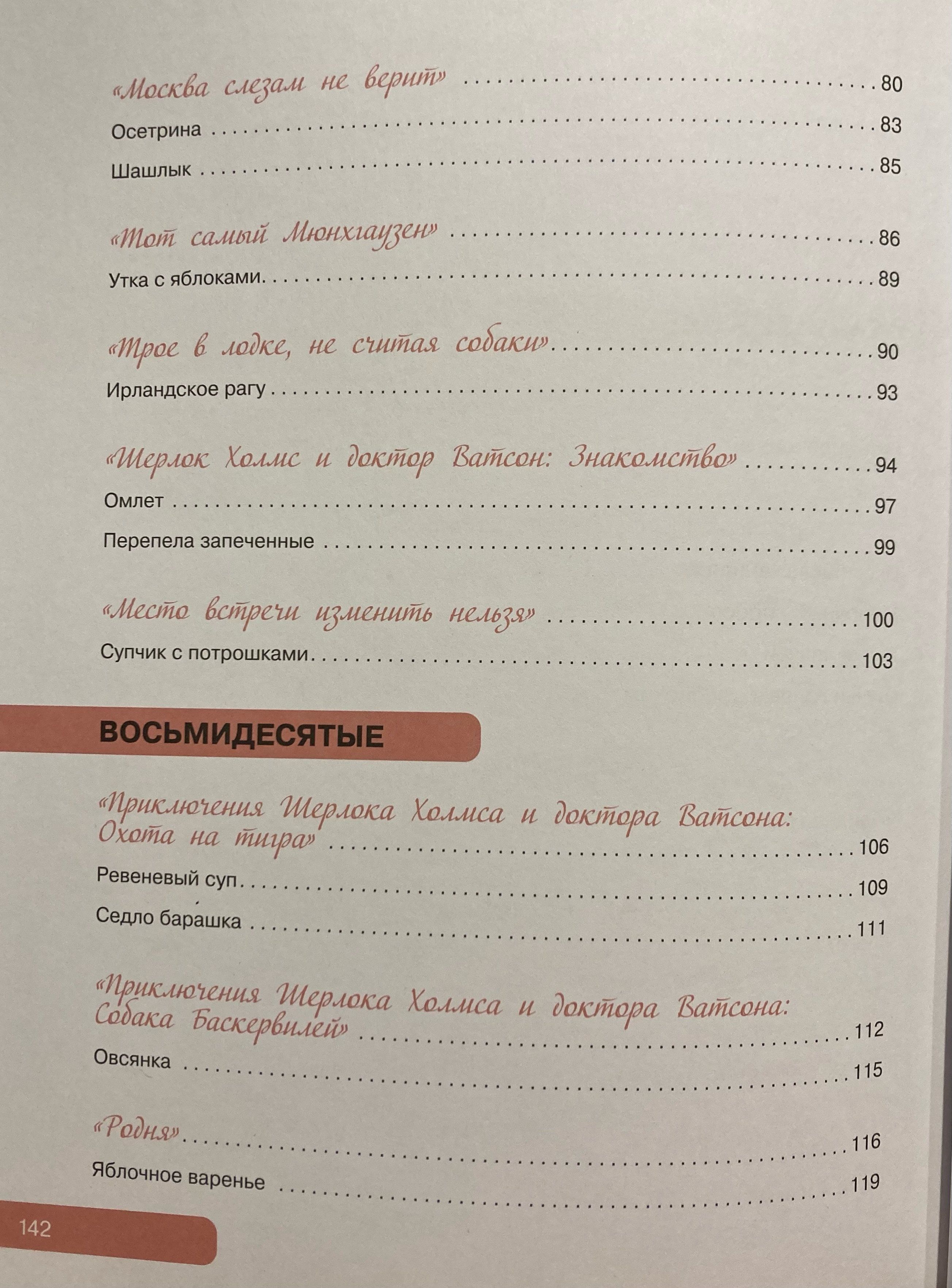 В издании собраны блюда, ставшие неотъемлемой частью культовых сцен: от ароматных пирожков с капустой до заливной рыбы и пирога «Ноктюрн». Каждый рецепт сопровождается интересными фактами о фильме, в котором он фигурировал, и кулинарными советами, которые помогут воссоздать атмосферу любимого кино.