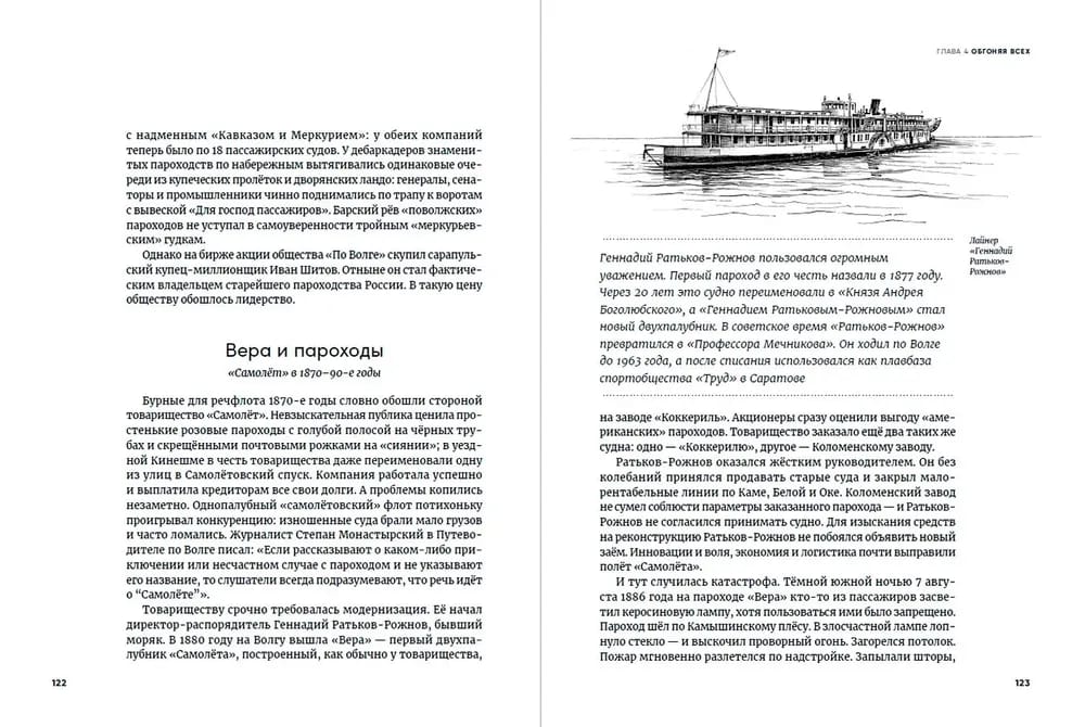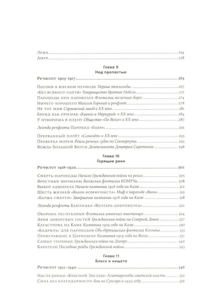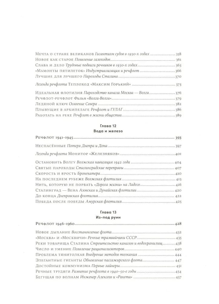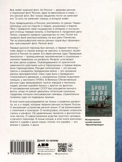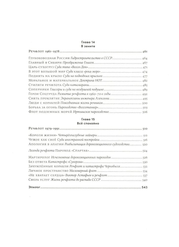 Русь превращалась в Россию, растекаясь по рекам. Первопроходцы шли на стругах и ладьях, дощаниках и барках. Пётр I превратил своё государство в империю и построил для столицы первые каналы, а Екатерина II, продолжая дела Петра, учредила на них правила судоходства. Потом эти правила были распространены на все реки Отечества. Так из разношёрстной массы речных судов был сформирован «регулярный» флот. Речной флот. Первый русский пароход был речным, и первый теплоход — тоже. Дорог в стране всегда не хватало, и прогресс пробирался в Россию по рекам. Его везли речные суда. Передовые технологии, промышленные, экономические и социальные, сначала появлялись на речфлоте. Речфлот участвовал во всех делах родины. Освободившиеся от крепости крестьяне шли в пароходчики, и первые фирмы были пароходствами. Расцвет капитализма — это речные тресты и синдикаты. Гражданская война — это сражения речных бронефлотилий. Свои суда были у бравурного стахановского движения, у грандиозных строек индустриализации, у жестокого ГУЛАГа. В Великую Отечественную речные суда эвакуировали тысячи заводов и миллионы людей, речные корабли бились с врагом на фронтах. И послевоенный расцвет СССР был расцветом речного флота, когда по рекам двинулись гигантские сухогрузы, горделиво поплыли пассажирские лайнеры, стремительно полетели суда на подводных крыльях. В этой книге рассказывается не только о развитии речфлота, но и о людях, которые творили речную историю России. О внутреннем устройстве речной жизни. О её взаимосвязях с политикой и культурой. О катастрофах, которые сотрясали страну и речфлот. Об удивительных проектах и фантастических мечтах. О нерасторжимом родстве простого человека и речного парохода. В конце концов, в этой книге рассказывается о судьбе и душе нации, потому что корабль — это всегда и судьба, и душа.