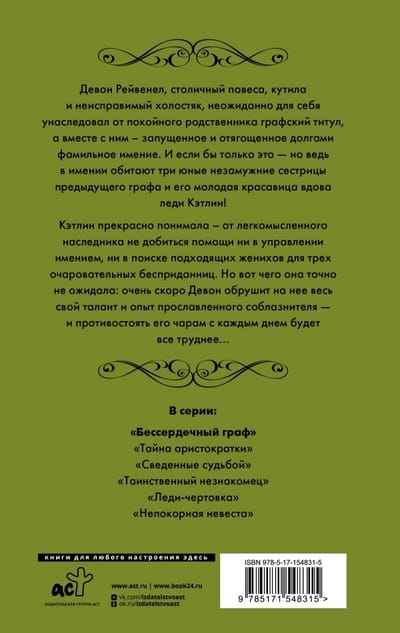 Девон Рейвенел, столичный повеса, кутила и неисправимый холостяк, неожиданно для себя унаследовал от покойного родственника графский титул, а вместе с ним – запущенное и отягощенное долгами фамильное имение. И если бы только это – но ведь в имении обитают три юные незамужние сестрицы предыдущего графа и его молодая красавица вдова леди Кэтлин!