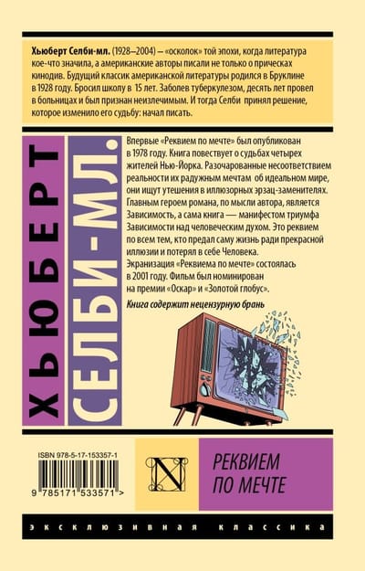 Впервые «Реквием по Мечте» был опубликован в 1978 году. Книга повествует о судьбах четырех жителей Нью-Йорка, которые, не в силах выдержать разницу между мечтами об идеальной жизни и реальным миром, ищут утешения в иллюзорных эрзац-заменителях. Главным героем романа, по мысли автора, является Зависимость, а сама книга — манифестом триумфа Зависимости над человеческим духом. Это реквием по всем тем, кто предал жизнь для радужной иллюзии и потерял в себе Человека.