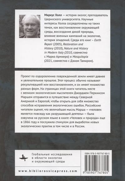 Проект по оздоровлению поврежденной земли имеет давнее и увлекательное прошлое. Этот процесс обычно называют рекультивацией или восстановлением, и он имеет множество разных форм. На страницах этой книги читатель месте с великим экологическим мыслителем Джорджем Перкинсом Маршем отправится в путешествие между Северной Америкой и Европой, чтобы открыть для себя множество способов исправления экологических ошибок. Читатели оценят, что величайшая мысль Марша «человек является повсюду как разрушающий деятель» была озвучена на русском языке в книге «Человек и природа» еще в 1866 году и послужила стимулом для выработки новых экологических практик в том числе и в России.