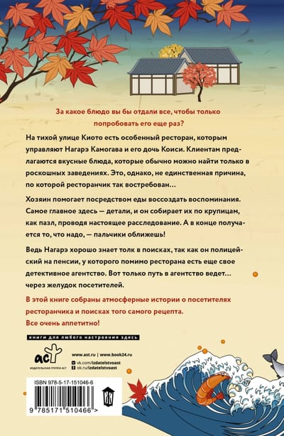 Вот только путь в агентство ведет... через желудок посетителей. Хозяин помогает с помощью еды воссоздать воспоминания. Самое главное здесь — детали, и он собирает их по крупицам, как пазл, проводя настоящее расследование. А в конце получается то, что надо, — пальчики оближешь! В этой книге собраны атмосферные истории о посетителях ресторанчика и поисках того самого рецепта. В каждом рассказе есть немного о жизни японцев и невероятно много интересного об уникальных блюдах японской кухни. Все очень аппетитно!