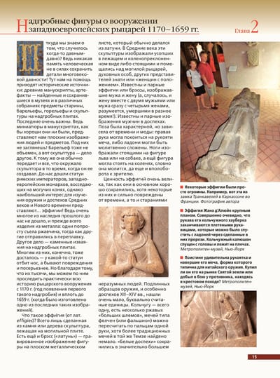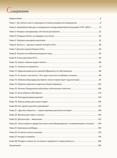 Эпоха расцвета и заката рыцарских доспехов, оружия и замков охватывает 200 лет — с 1500 по 1700 г.! В этот период прогресс значительно ускорился, появились новые орудия труда и войны. Произошла замена феодальных дружин и городских ополчений на наемные и национальные армии. И именно в этот период произошел неслыханный подъем оружейного мастерства, максимальное совершенство «железной одежды», и затем практически полный отказ от доспехов.