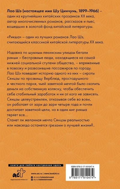 «Рикша» – один из лучших романов Лао Шэ, считающийся классикой китайской литературы XX века.