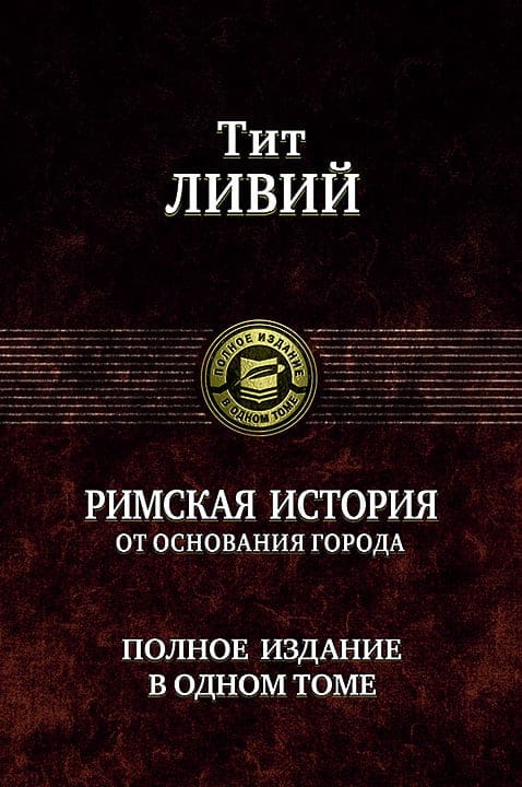 Тит Ливий (Titus Livius) (59 г. до н.э. — 17 г. н.э.) — один из самых известных римских историков и философов, принадлежащих к золотому веку древнеримской литературы. Почти всю свою жизнь он посвятил созданию фундаментального труда об истории Рима. Настоящее издание включает все дошедшие до нас 35 книг, описывающие историю Римской империи от мифического прибытия Энея в Италию до 167 года до н.э. Эта книга — блестящий памятник великолепию и могуществу Древнего Рима и один из основных источников современных знаний о древнеримской истории.